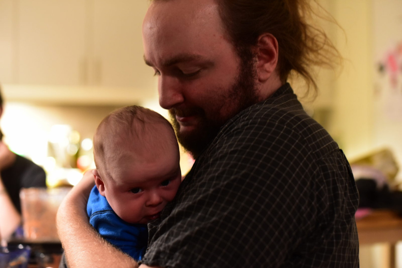 Jeanette och Axel kom förbi på middag och busade med Erik.