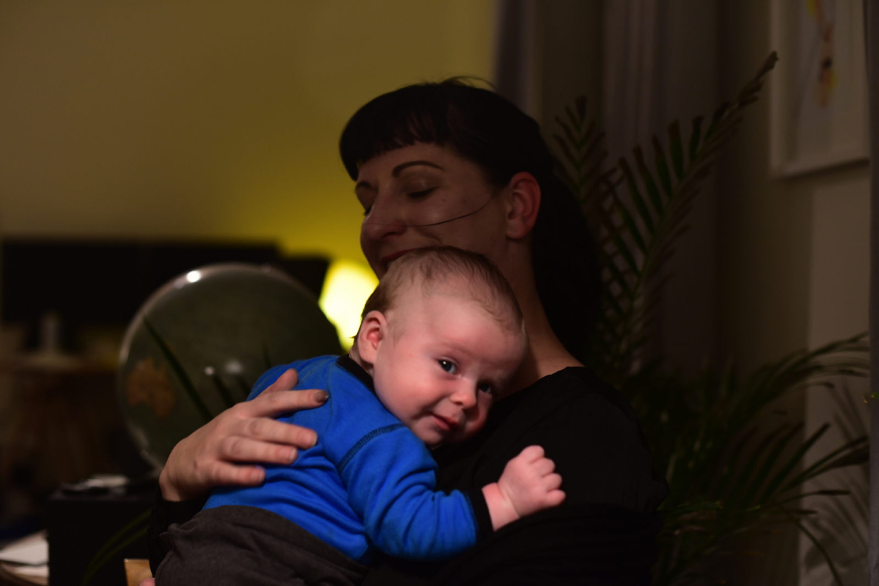 Sova är bäst när man är i famnen men han är lite större och starkare och det är obekvämare för både honom och oss. Vagnen går bättre och bättre men bärsele är bättre än vagn fortfarande…!