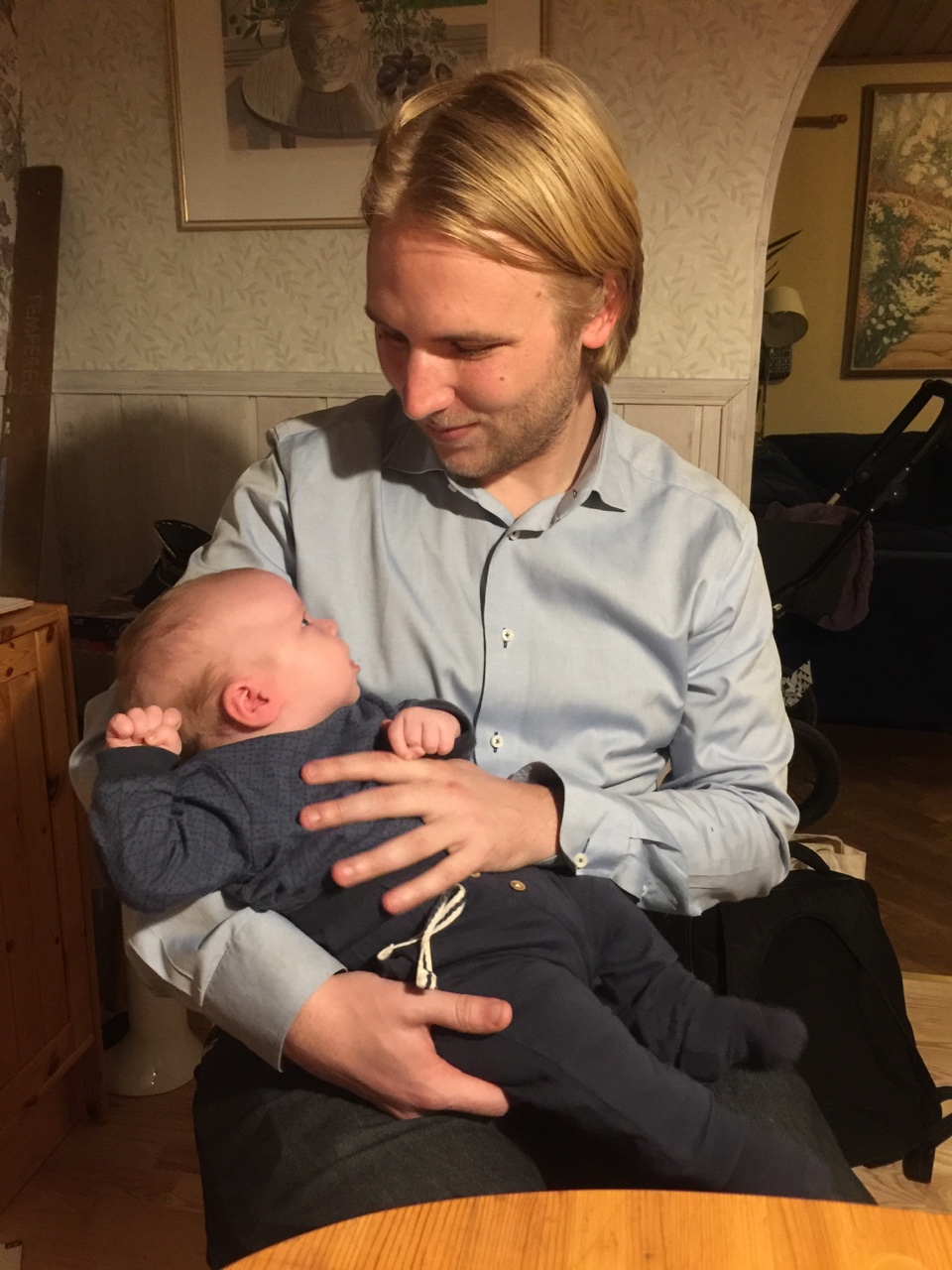 Erik sov sött på vägen till föräldragruppen. Väl där var han klarvaken, till skillnad från de andra bebisarna som låg lugnt i sina mödrars famnar även när de inte sov. Erik däremot var betydligt mer intresserad av att sitta upp i famnen och försöka “snacka” med morsorna…