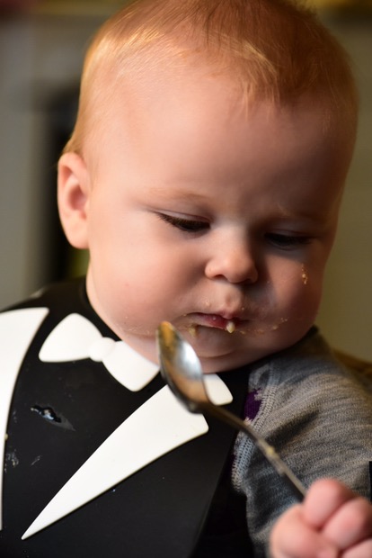 Efter att ha fått en ovanligt tidig start på dagen och en lång natt med en mycket ledsen bäbis misstänker vi ny tandsprickning. Det faktum att Erik plötsligt hellre biter de händer som föder honom än sina egna talar för det.Mjölkbaren ransonerade nattens mjölkkvoter för att det inte skulle bli strejk i mjölkproducentledet till följd av den bitska lilla kunden.