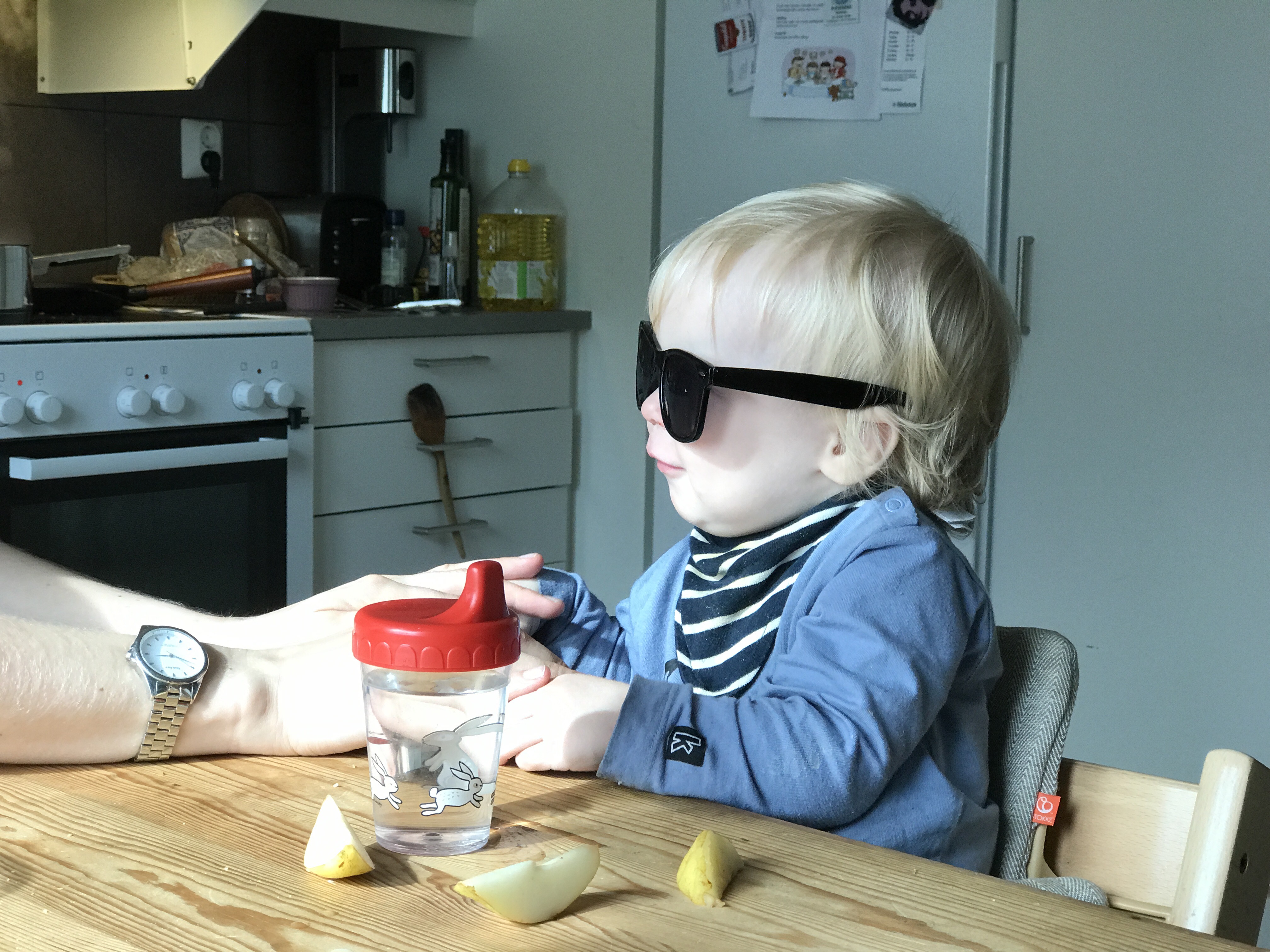Farmor glömde solglasögonen. Erik tycker de passar bättre på honom i alla fall.