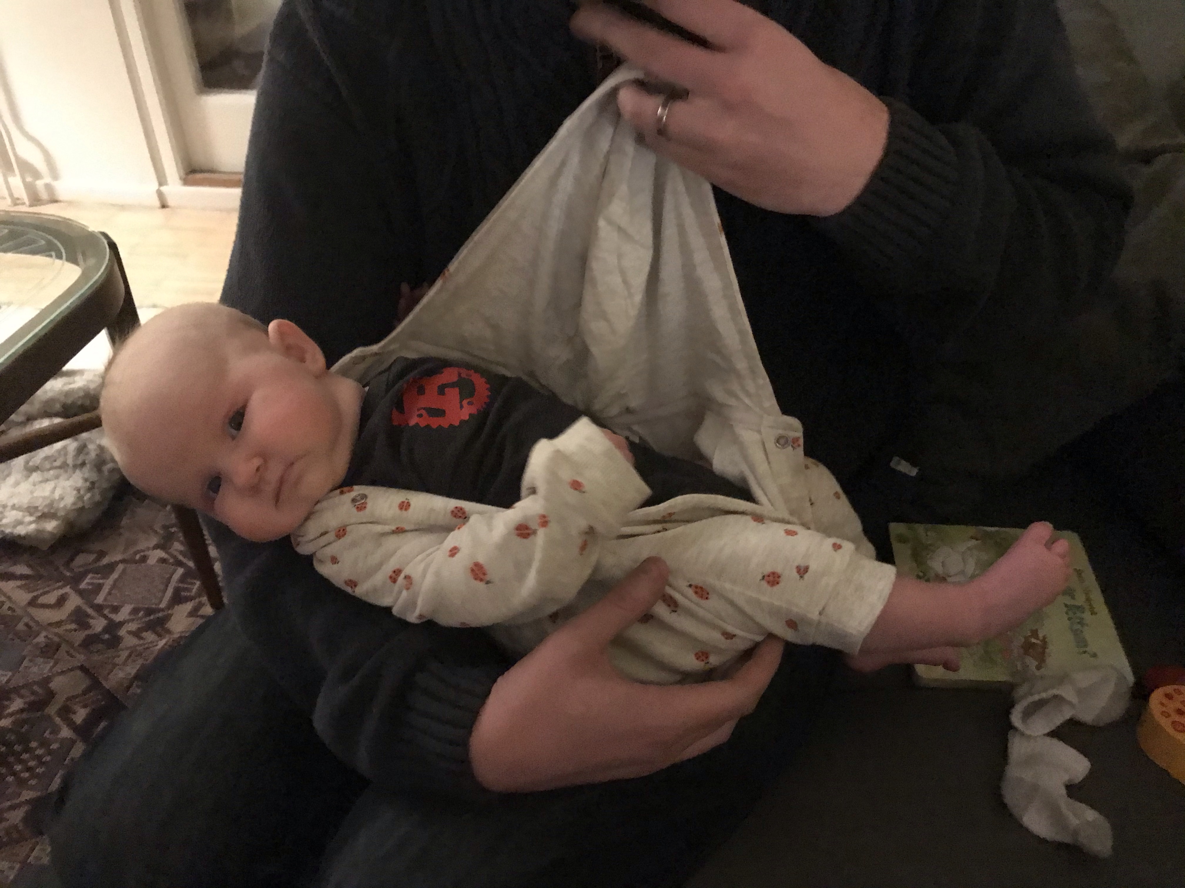 Här är Astrid i sin fina onsie som är roterad 90 grader.