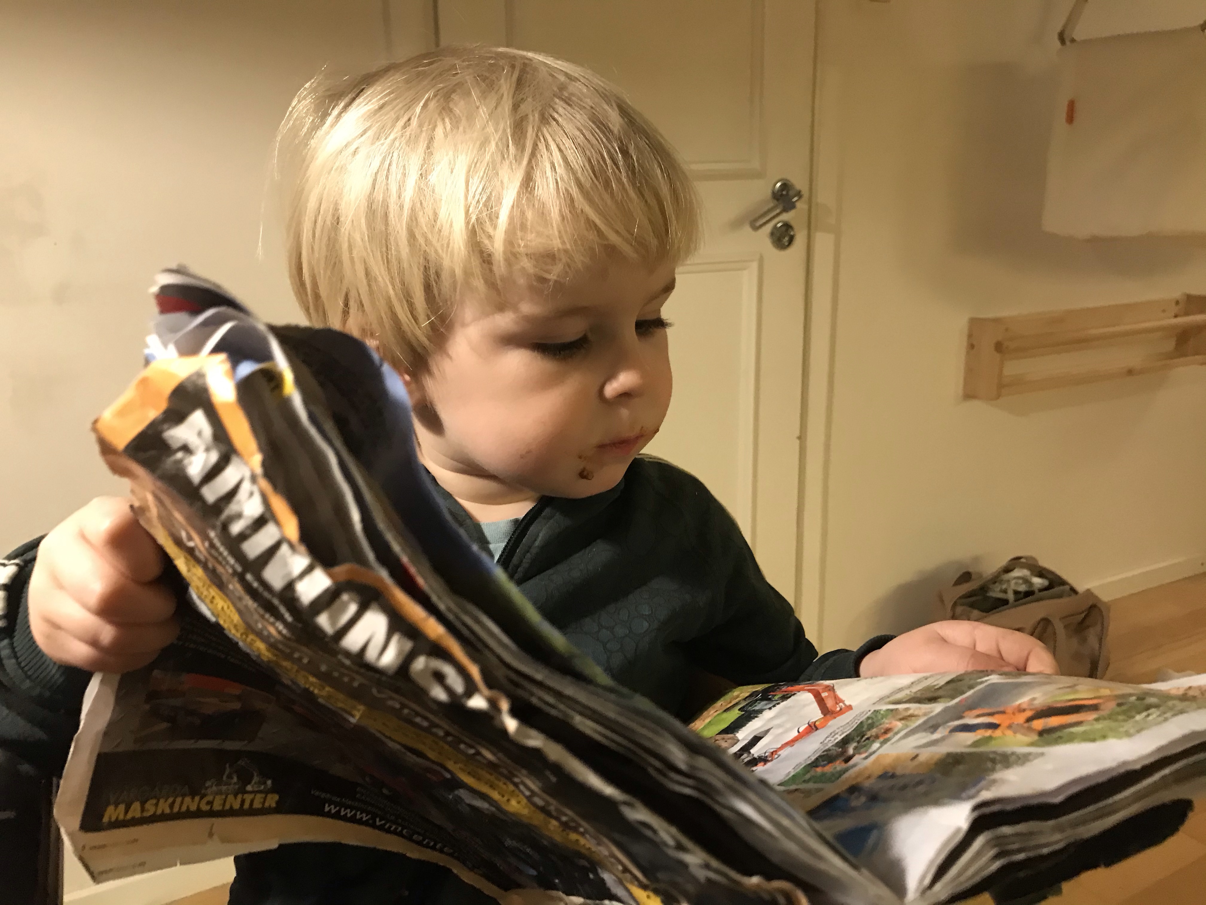 Mycket av läsningen är medläsning snarare än att läsa för Erik. Vi vill att han ska förstå och tycka det är kul så han får styra mycket av bokläsandet just nu.