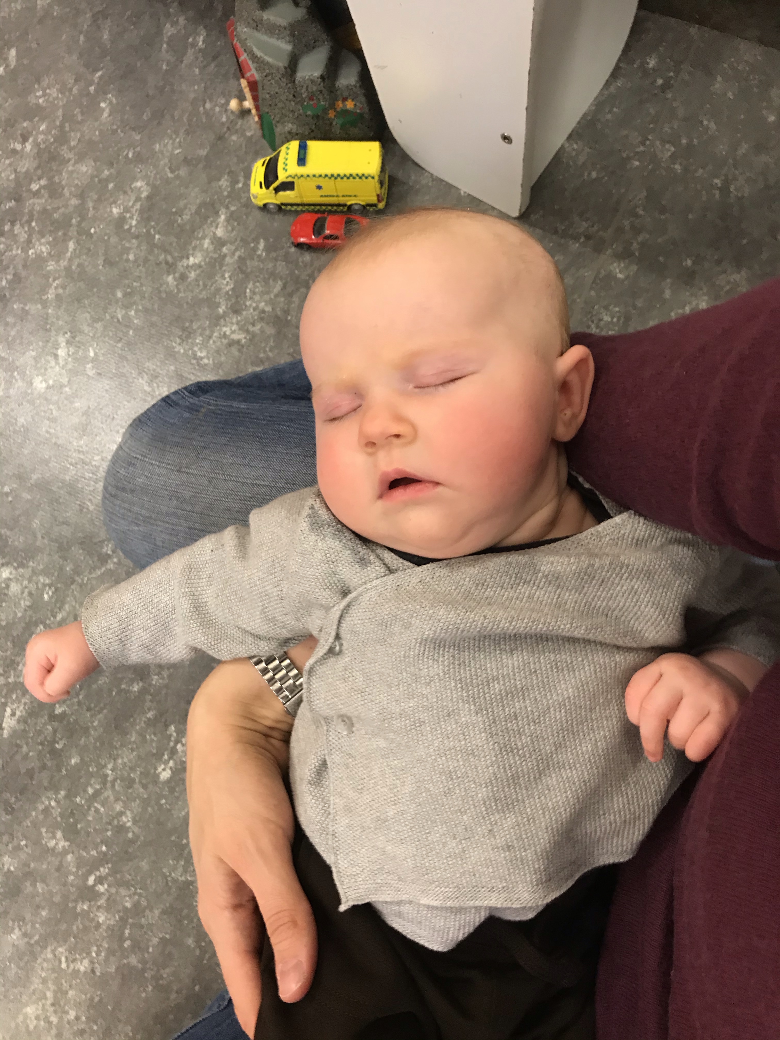 På vägen hem hämtade vi en mycket trött storebror efter en lång dag på förskolan.
