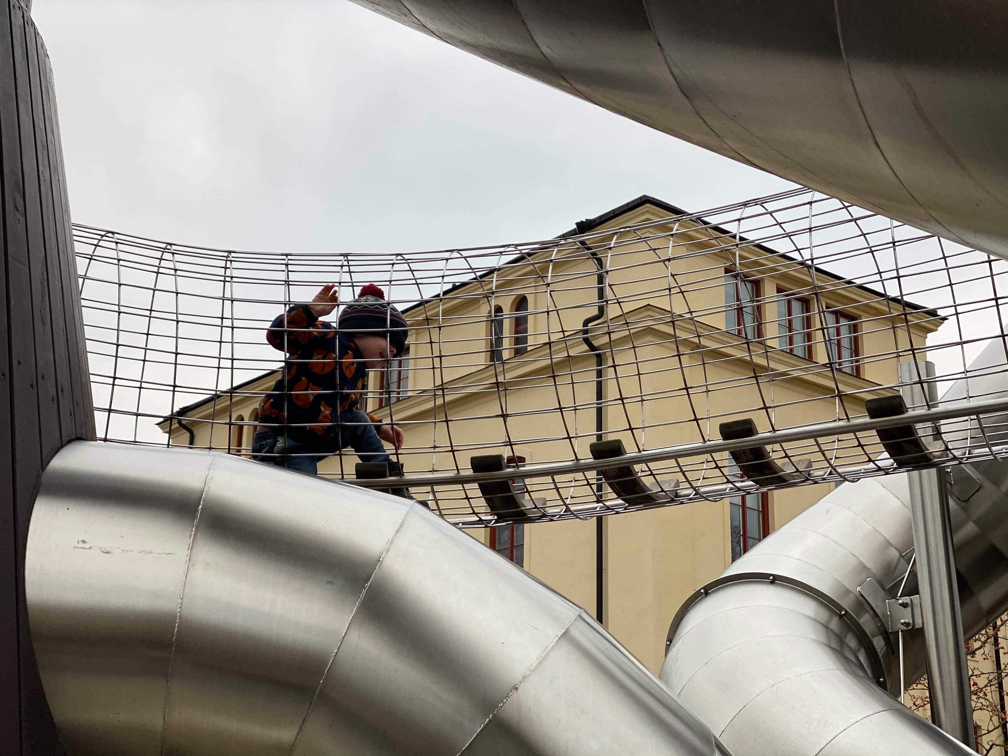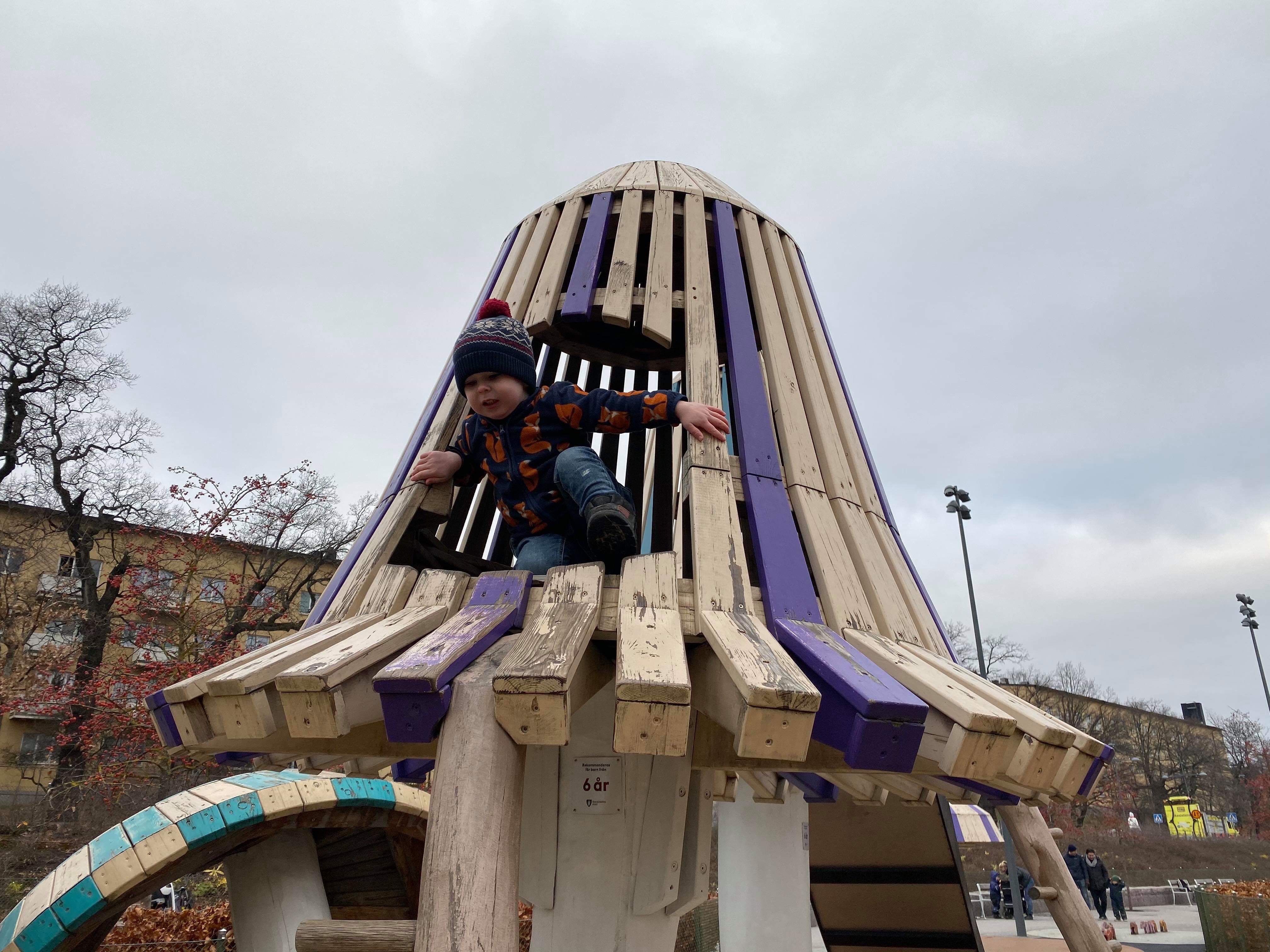 Idag blev det ett besök till Uggleparken. Där finns det jättemånga rutschkanor! Men i det 5 gradiga novembervädret konstaterade även den frostsäkra fadern att det hade kanske varit bra med vantar på den i moderns tycke lättklädde sonen.