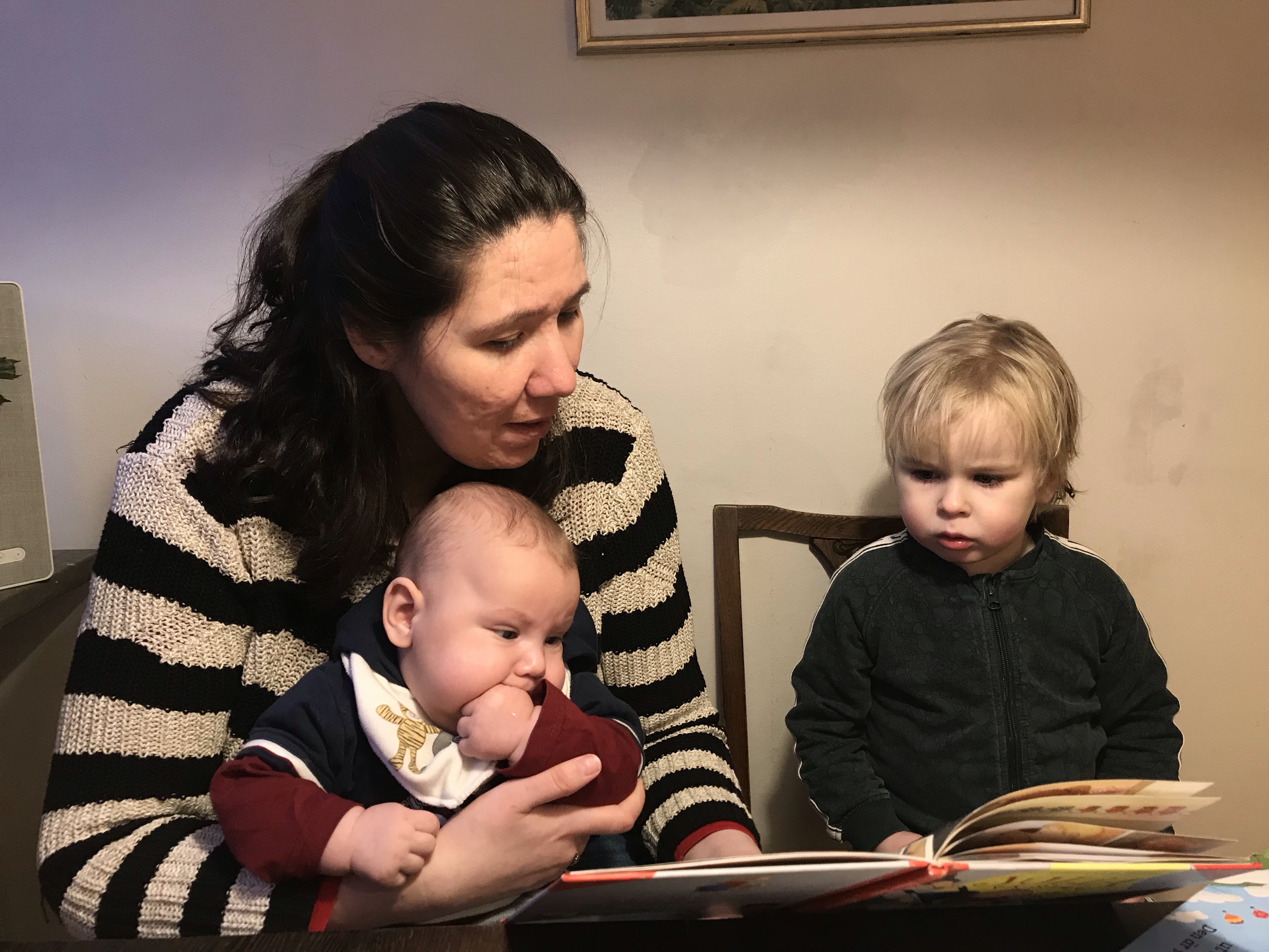 Här nedan läser vi Julia med faster Louise och kusin Sebastian.