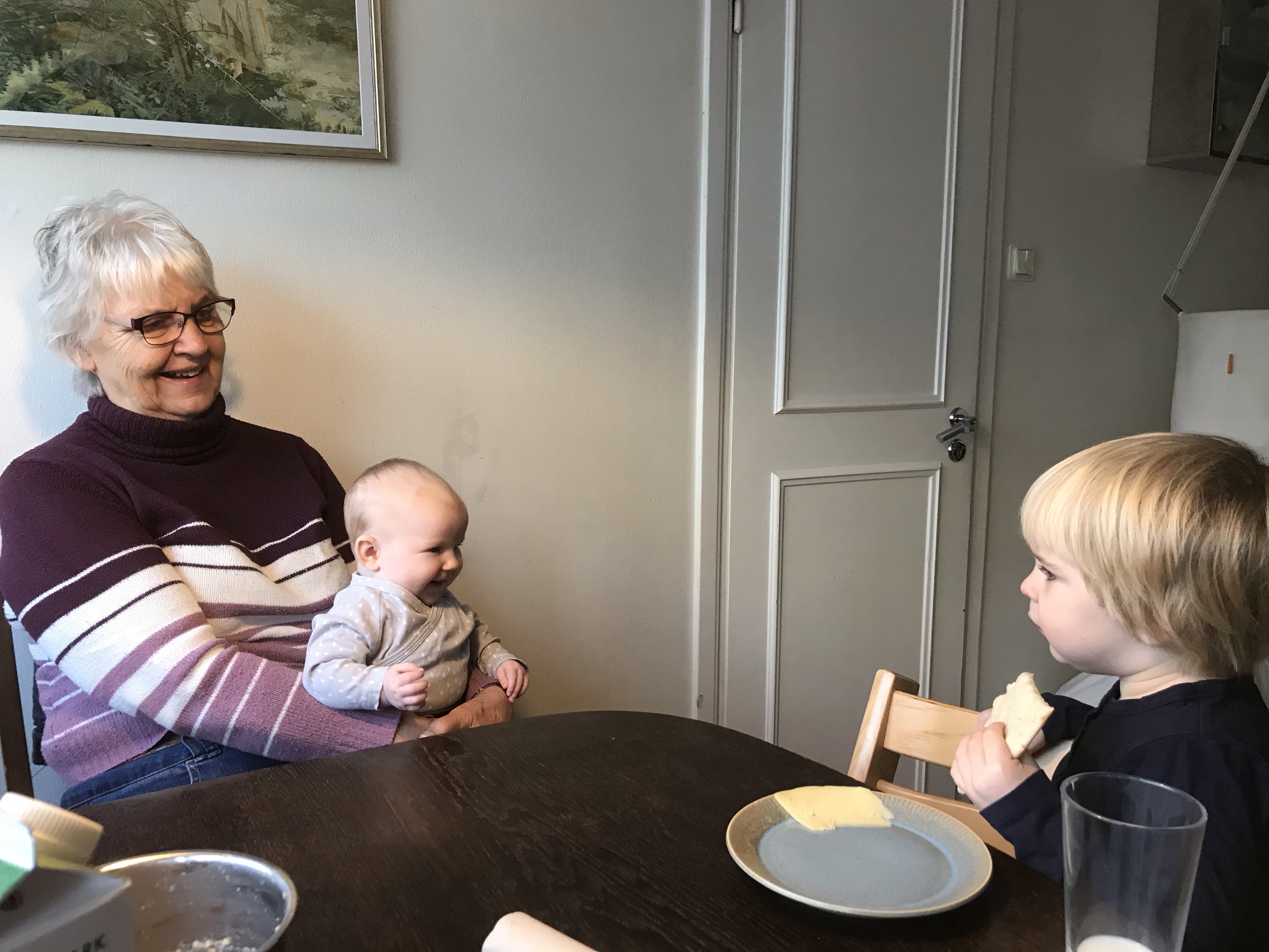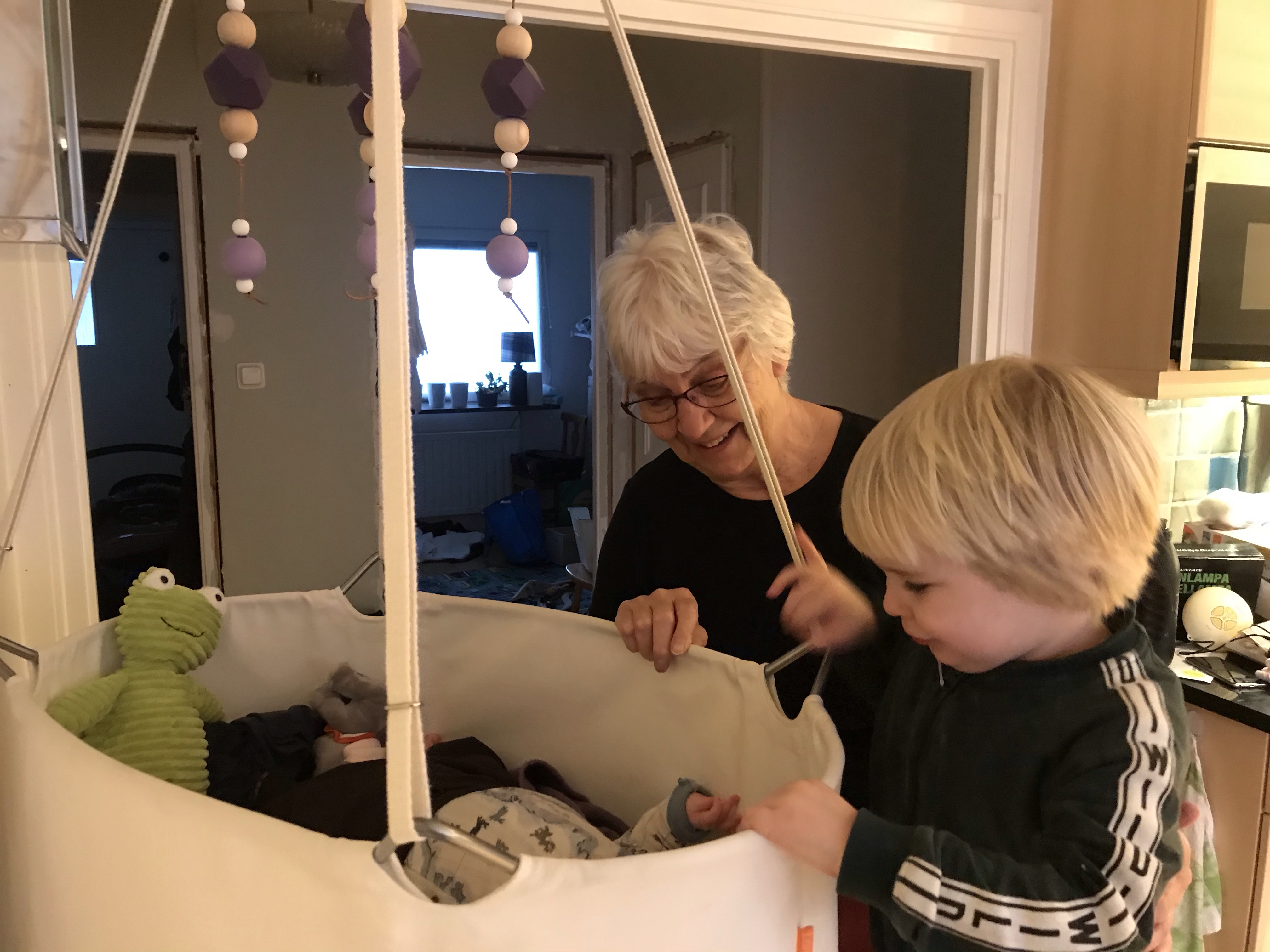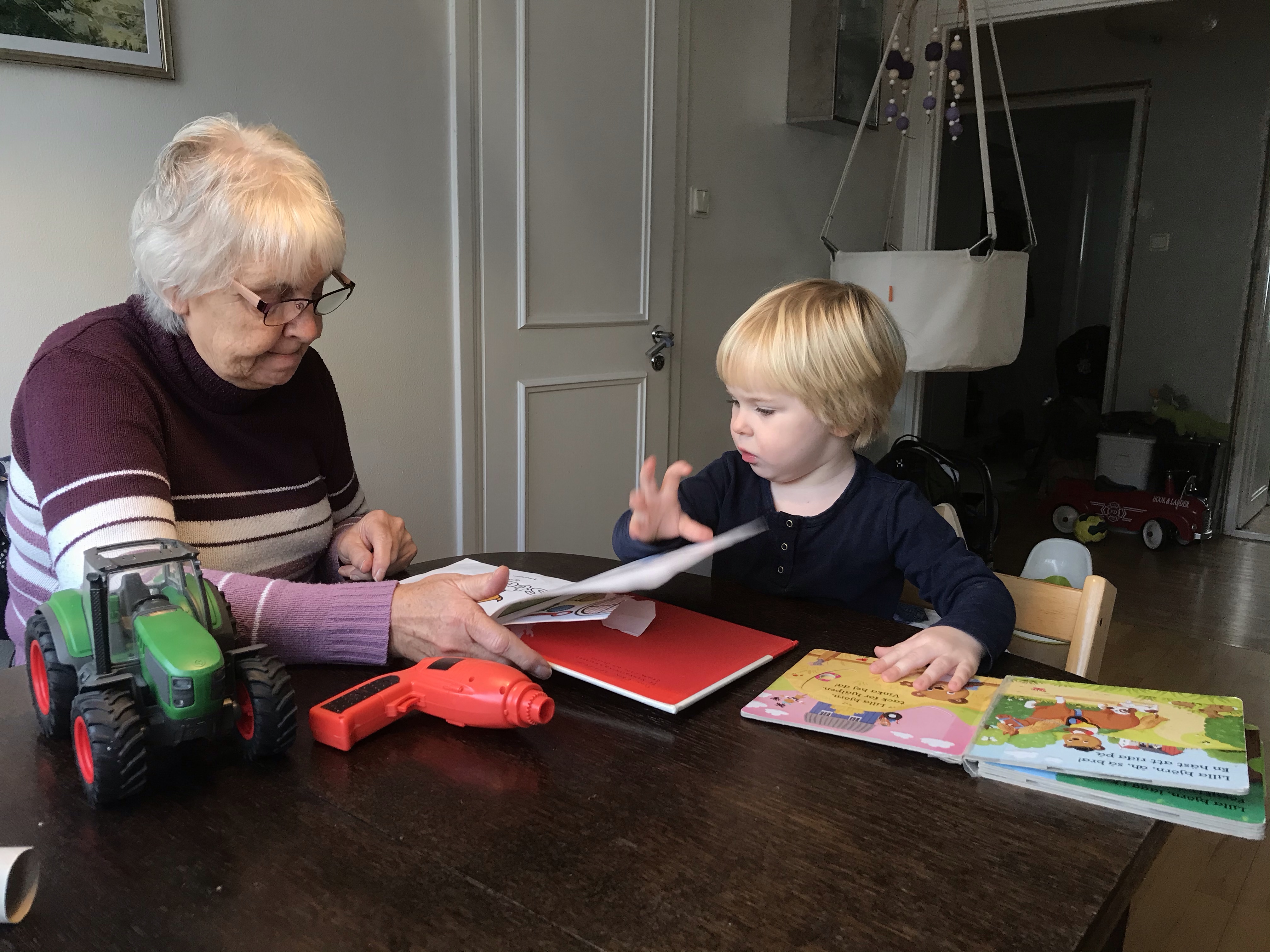 Erik blev jätteglad när pappas mormor Iréne kom i torsdags.