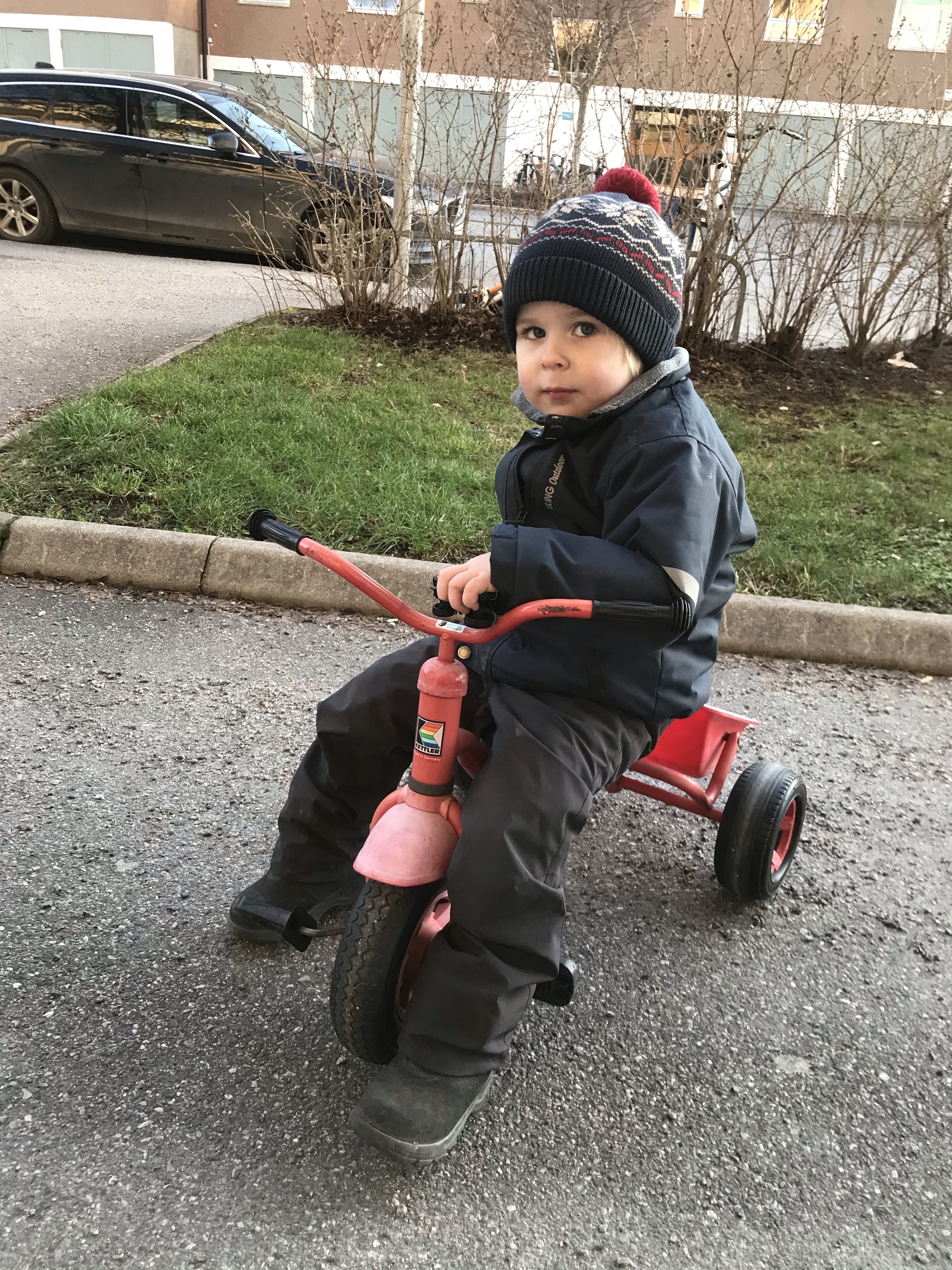 Oj vad Erik blev entusiastisk! Kunde det vara en bil…? Snabbt sprang vi upp till pappa och hjälptes åt att öppna det stora paketet!