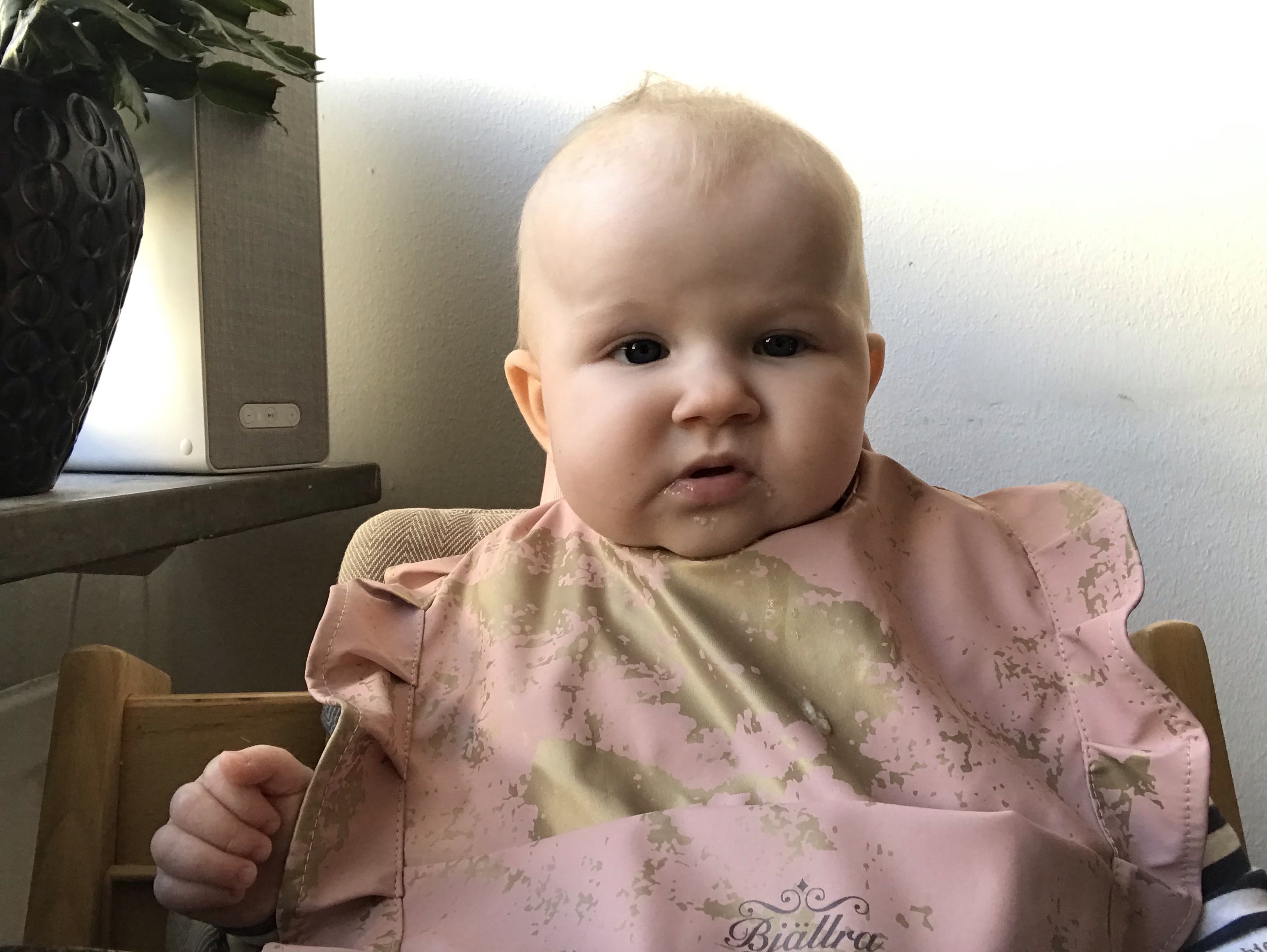 Astrid visade en viss initial skepsis mot den nya mjölkavvänjningsstrategin. Vår unga starkmjölksentusiast visade sig vara en präktig bäbis som snabbt kunde avlägsna gröten ur munnen.