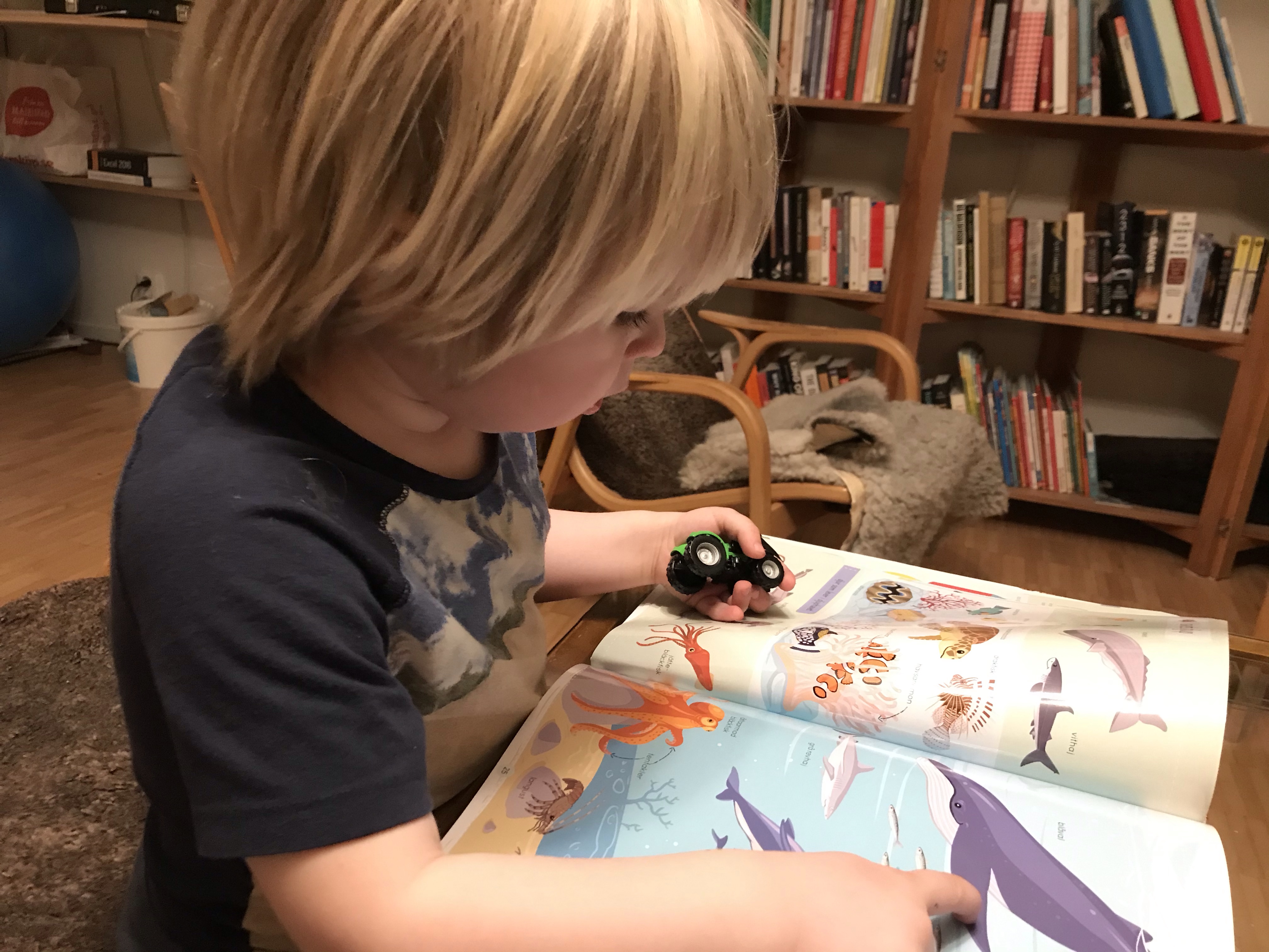 Det är alltid lika roligt att hitta nya favoritböcker. Erik och mamma blev mycket förtjusta i “1000 djur”.