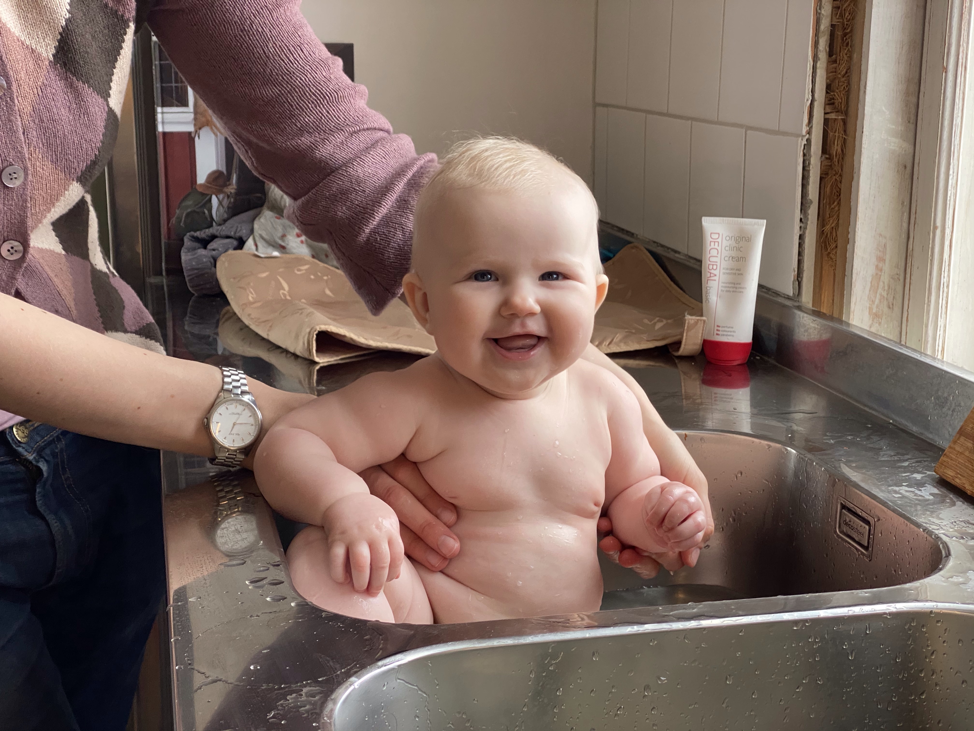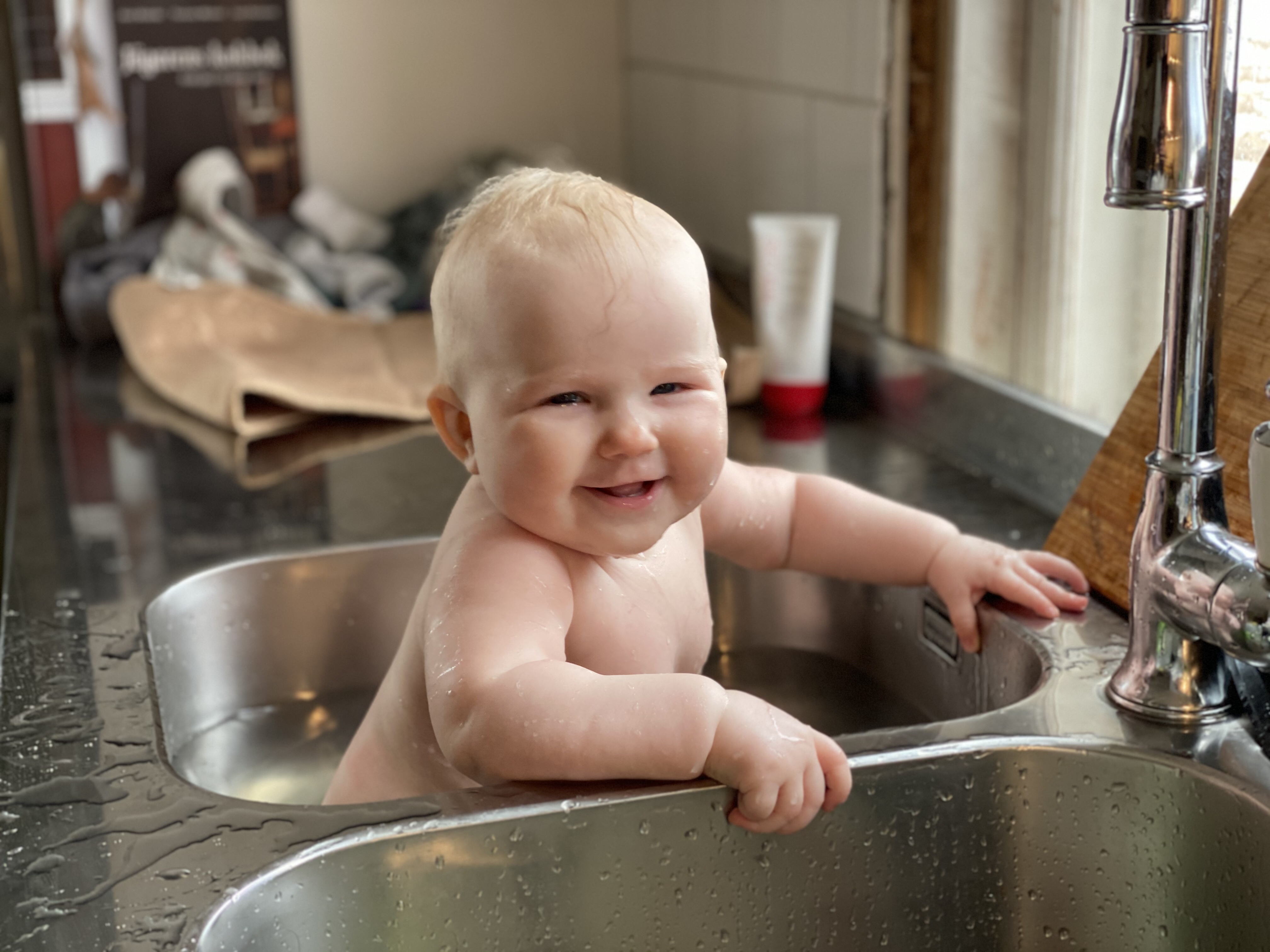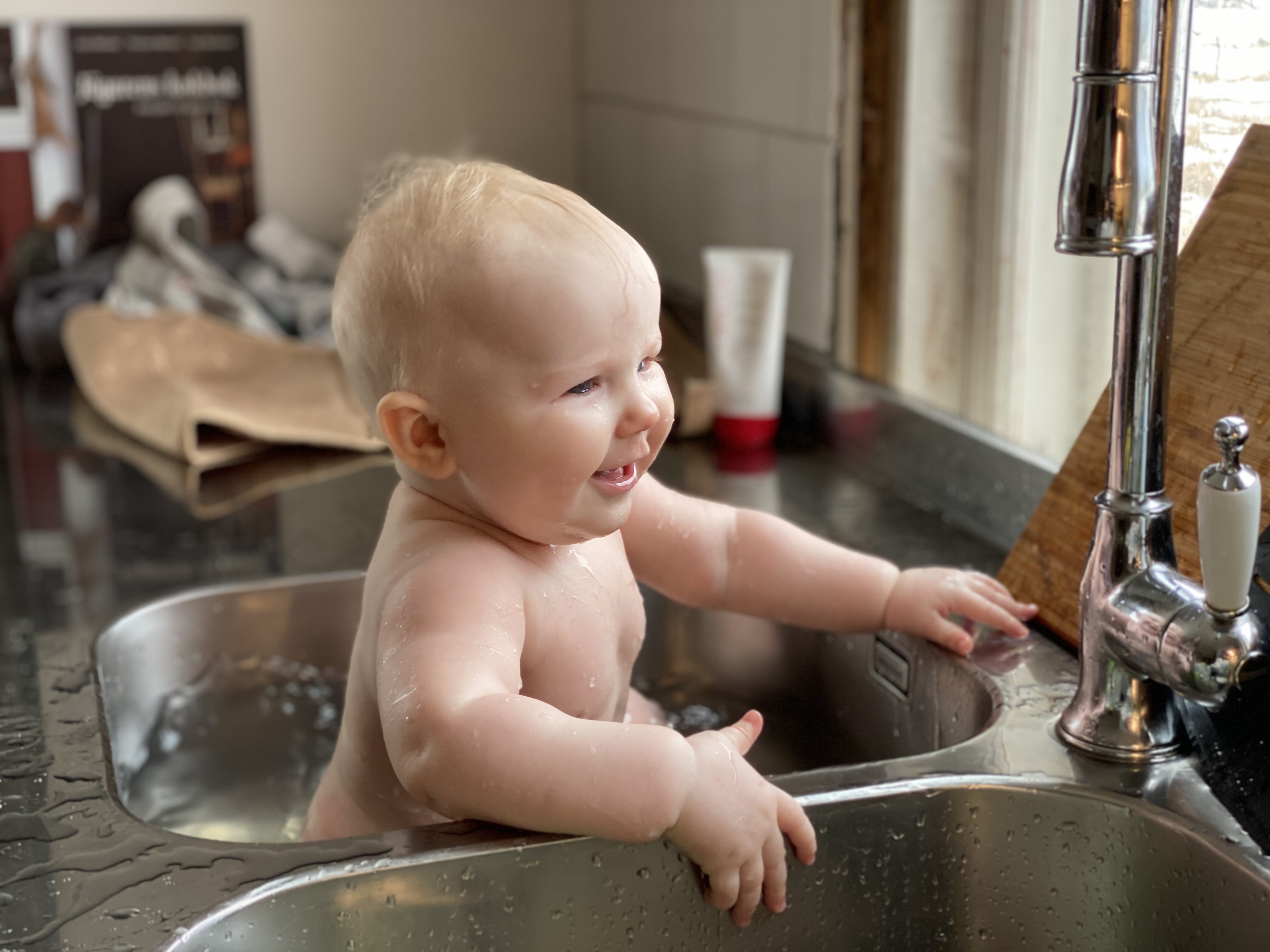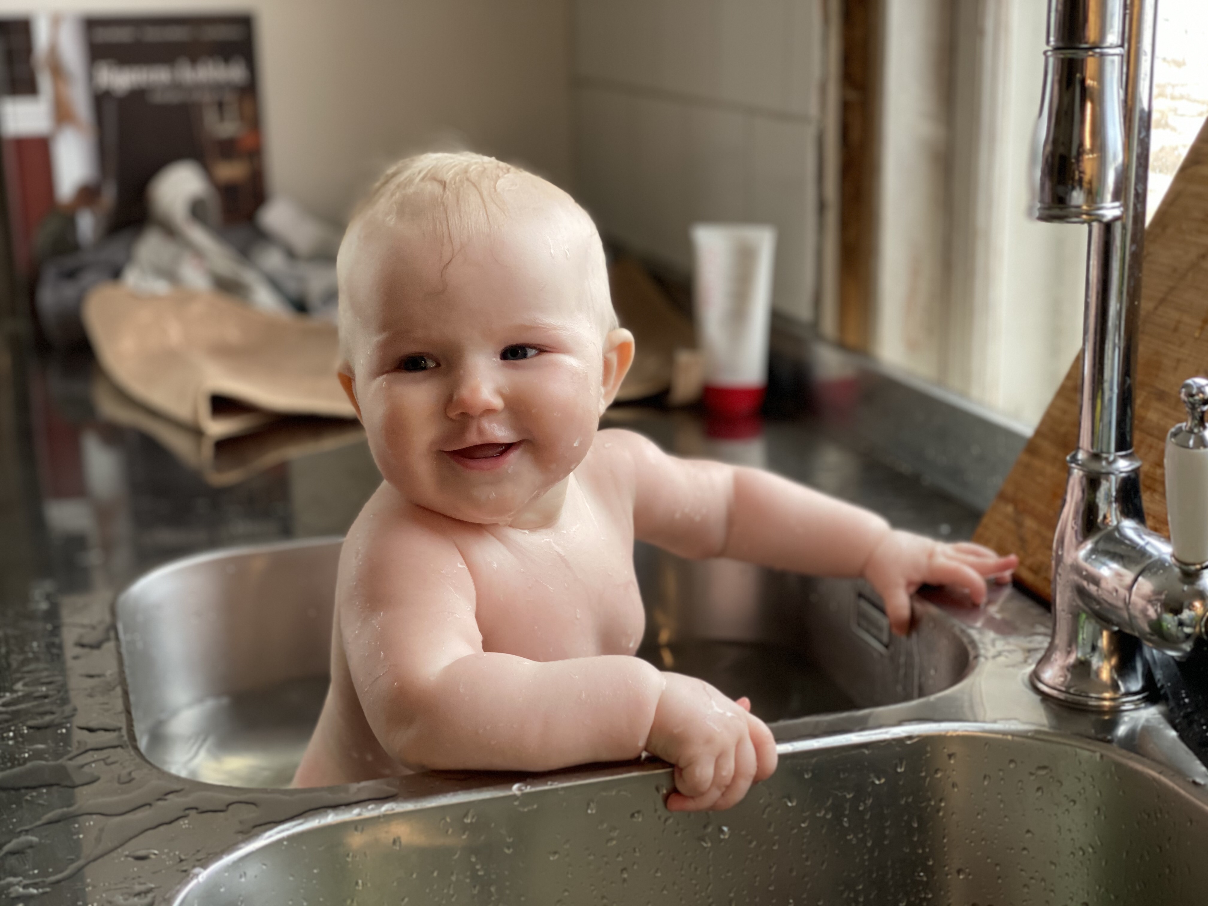 Diskhon är såklart bästa badet när man börjat sitta stadigt.