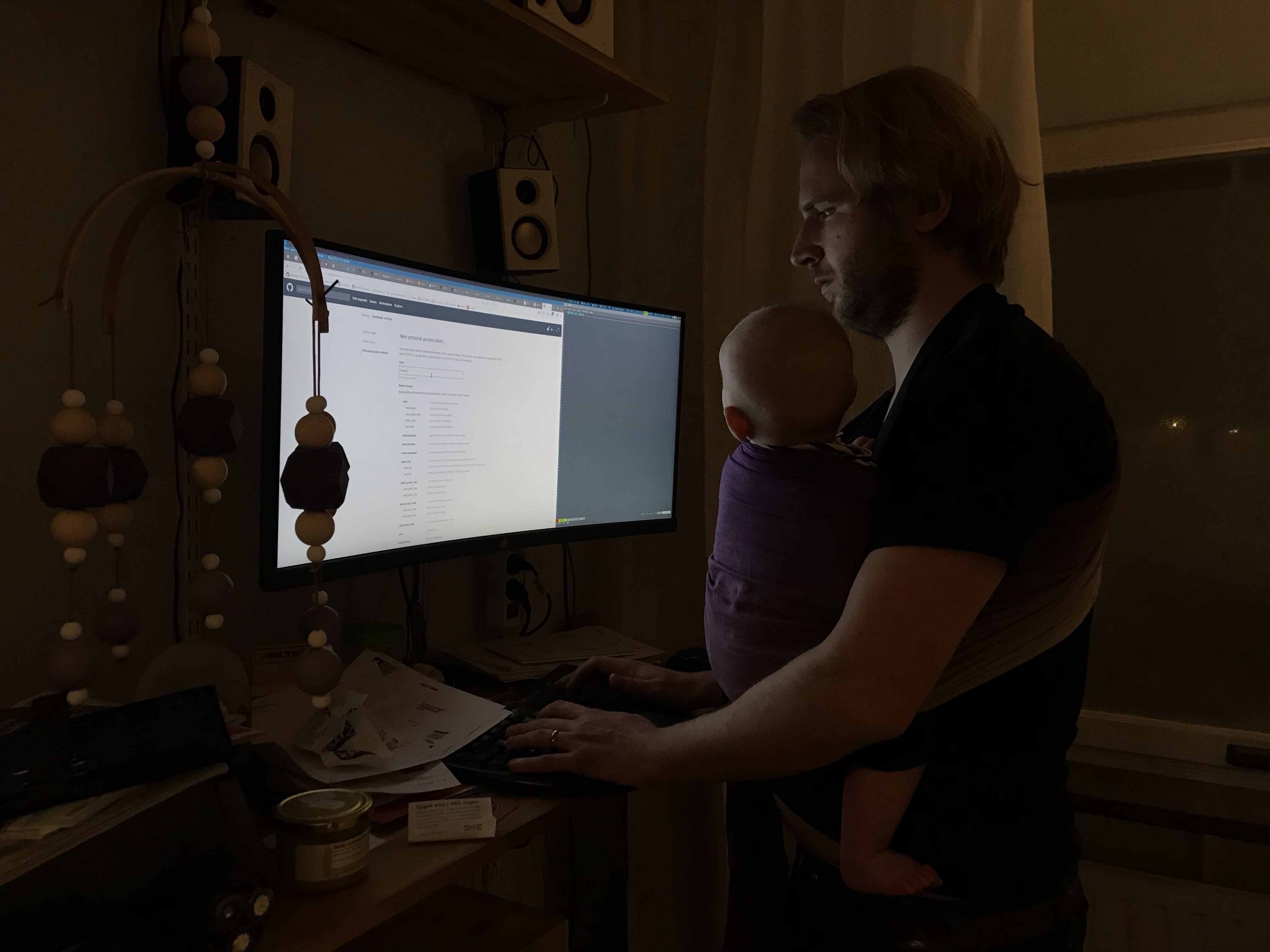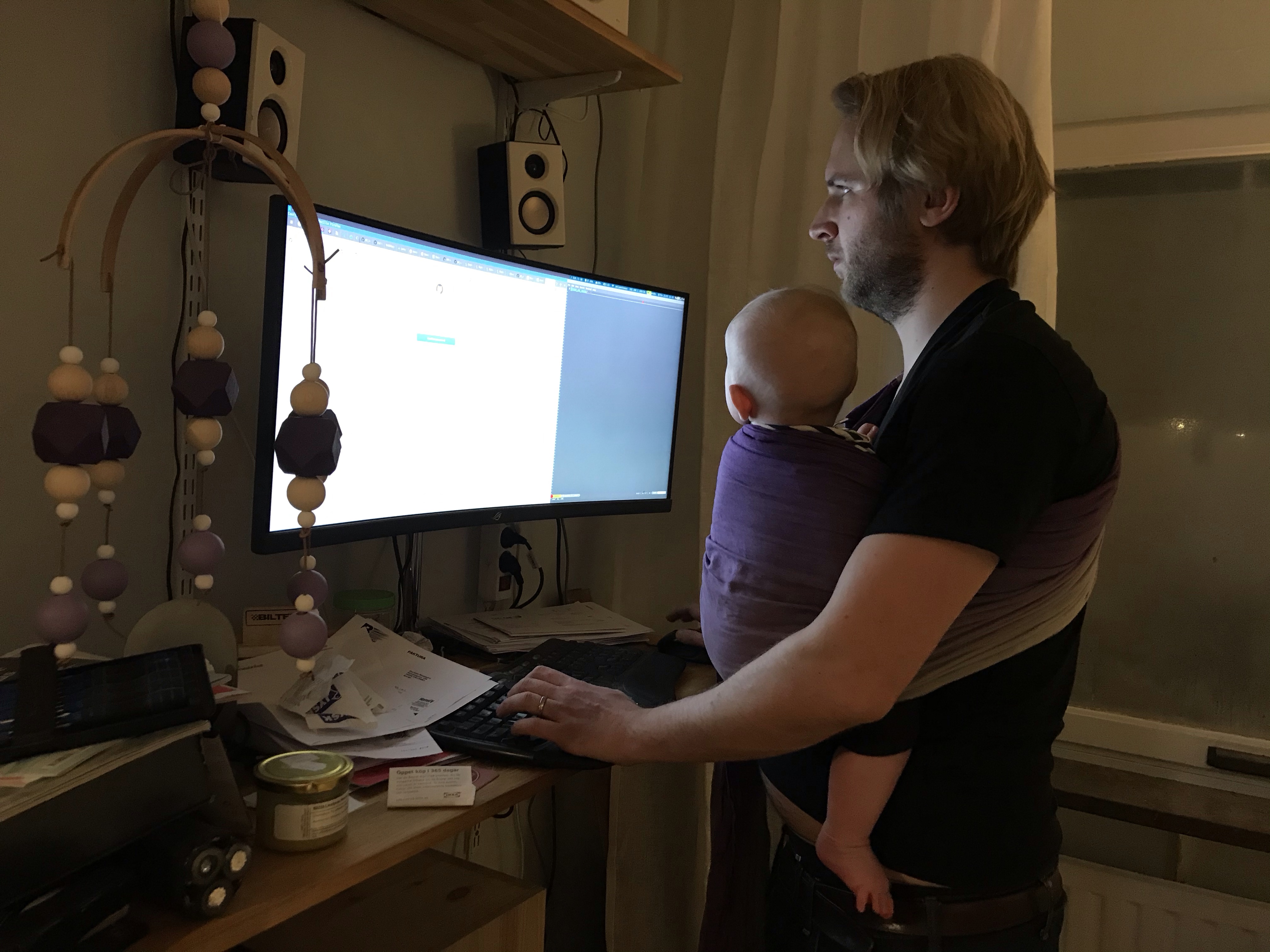 När man har en typiskt jobbsugen pappa är det bra att det finns en ringsjal hemma.