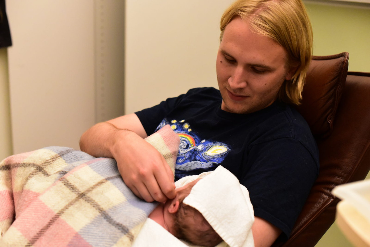 Första natten var det fullt på BB, så vi fick ligga kvar på förlossningen. Ingen av oss sov särskilt mycket. Erik var vaken flera timmar och låg och rörde sig (och hickade) brevid Charlotta.