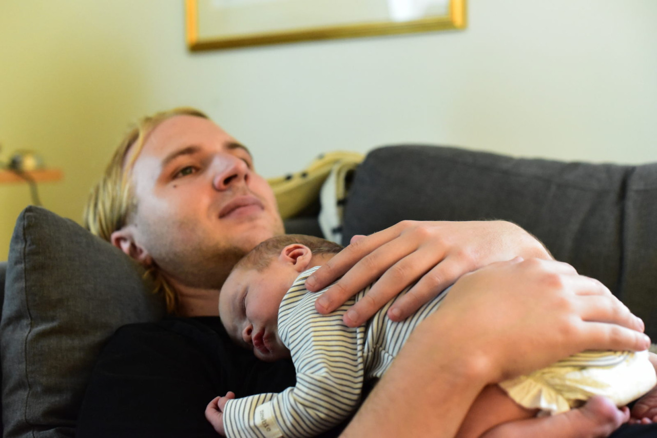 Efter att pediatrikern hade undersökt Erik på morgonen den 18e fick vi åka hem! Innan vi lämnade BB åkte Emil och hämtade Morfar Anders, som följde med hem till Blackeberg. Vi firade hemkomsten med brie- och salami-mackor efter Charlottas önskemål. 🙂