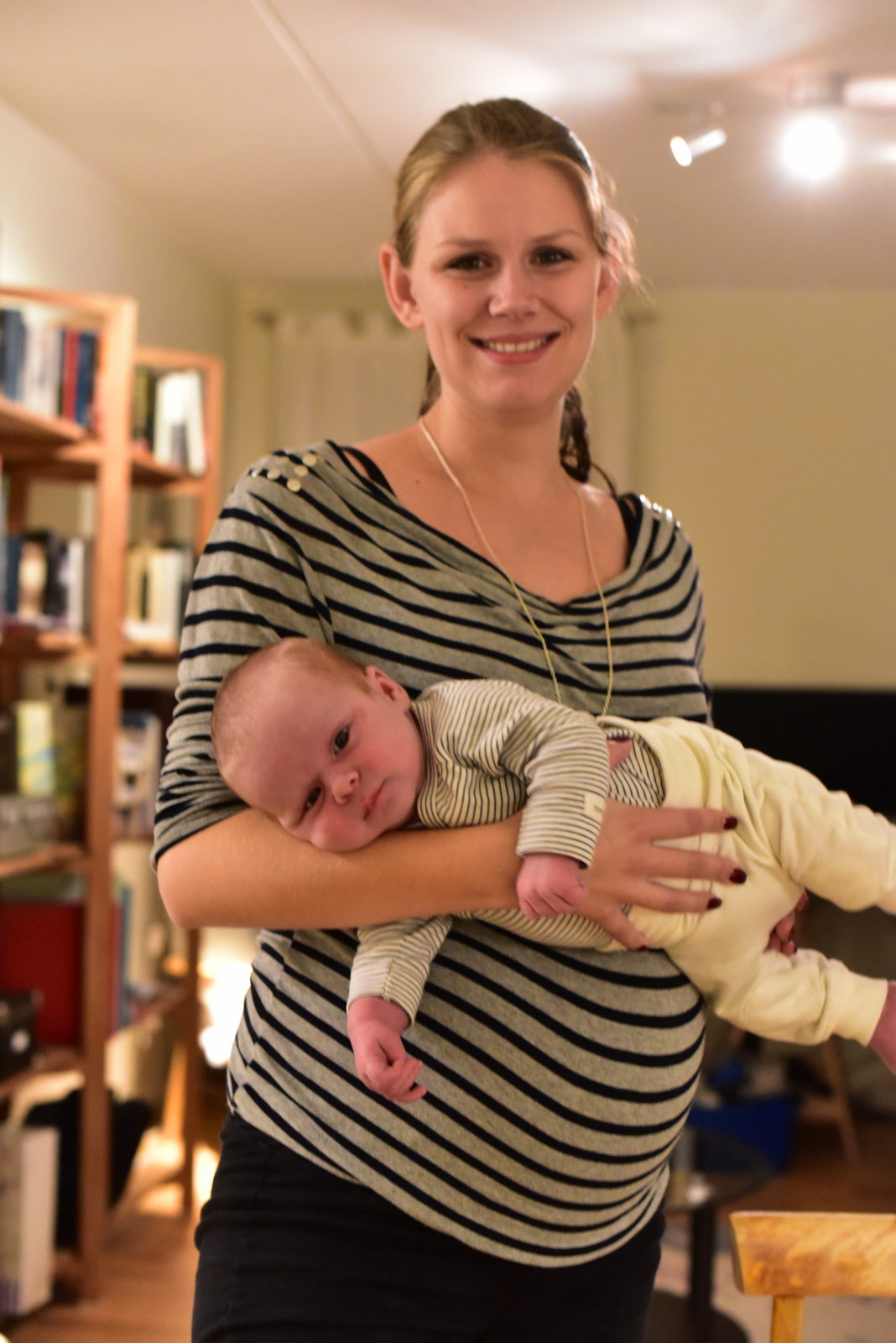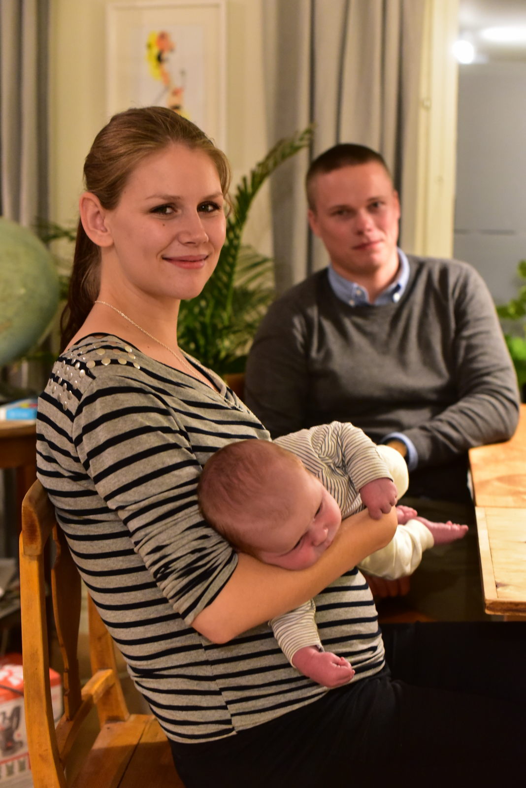 Alf och Frida tittade förbi på middag och bebismys efter BVC:s hembesök.