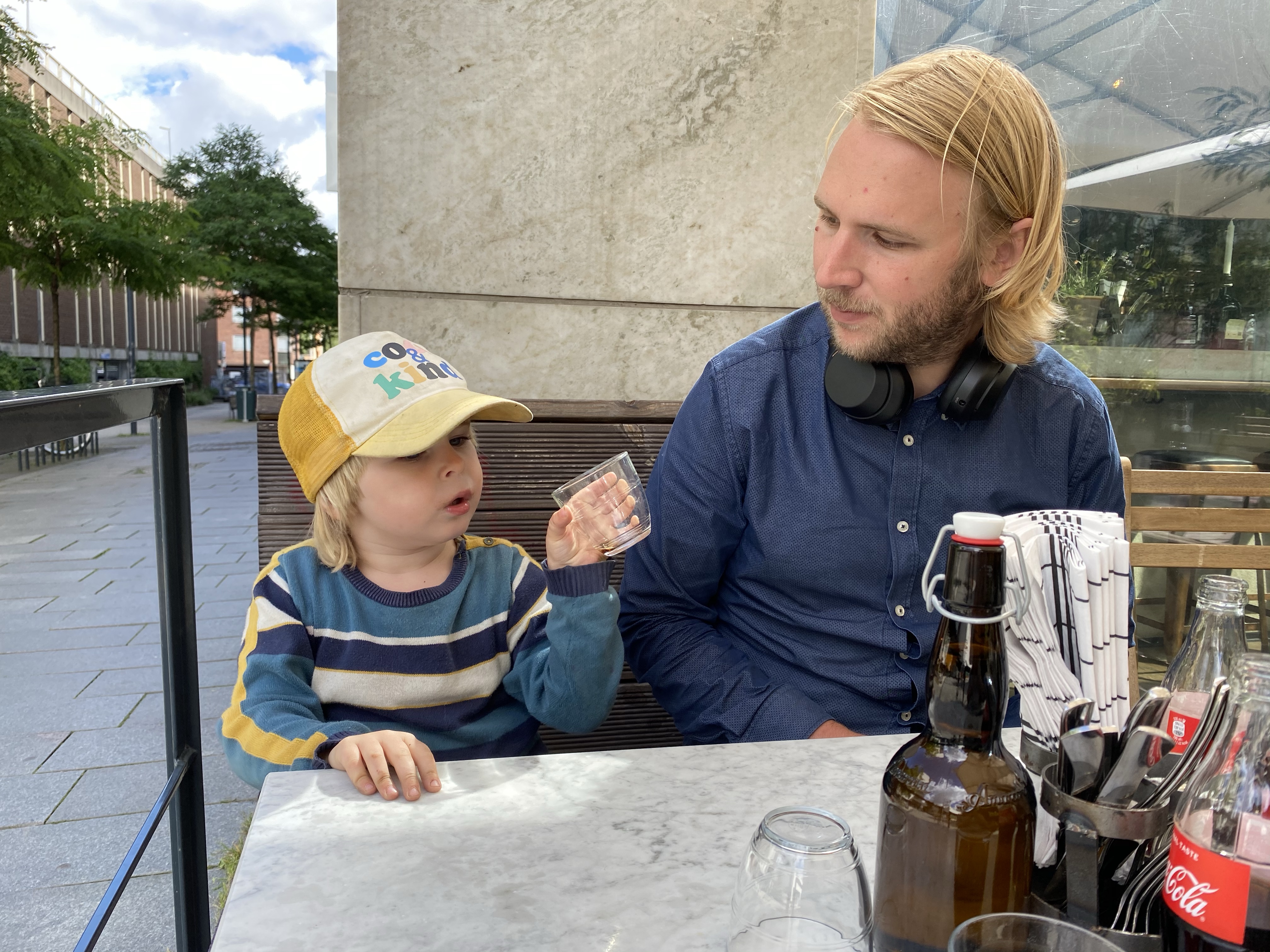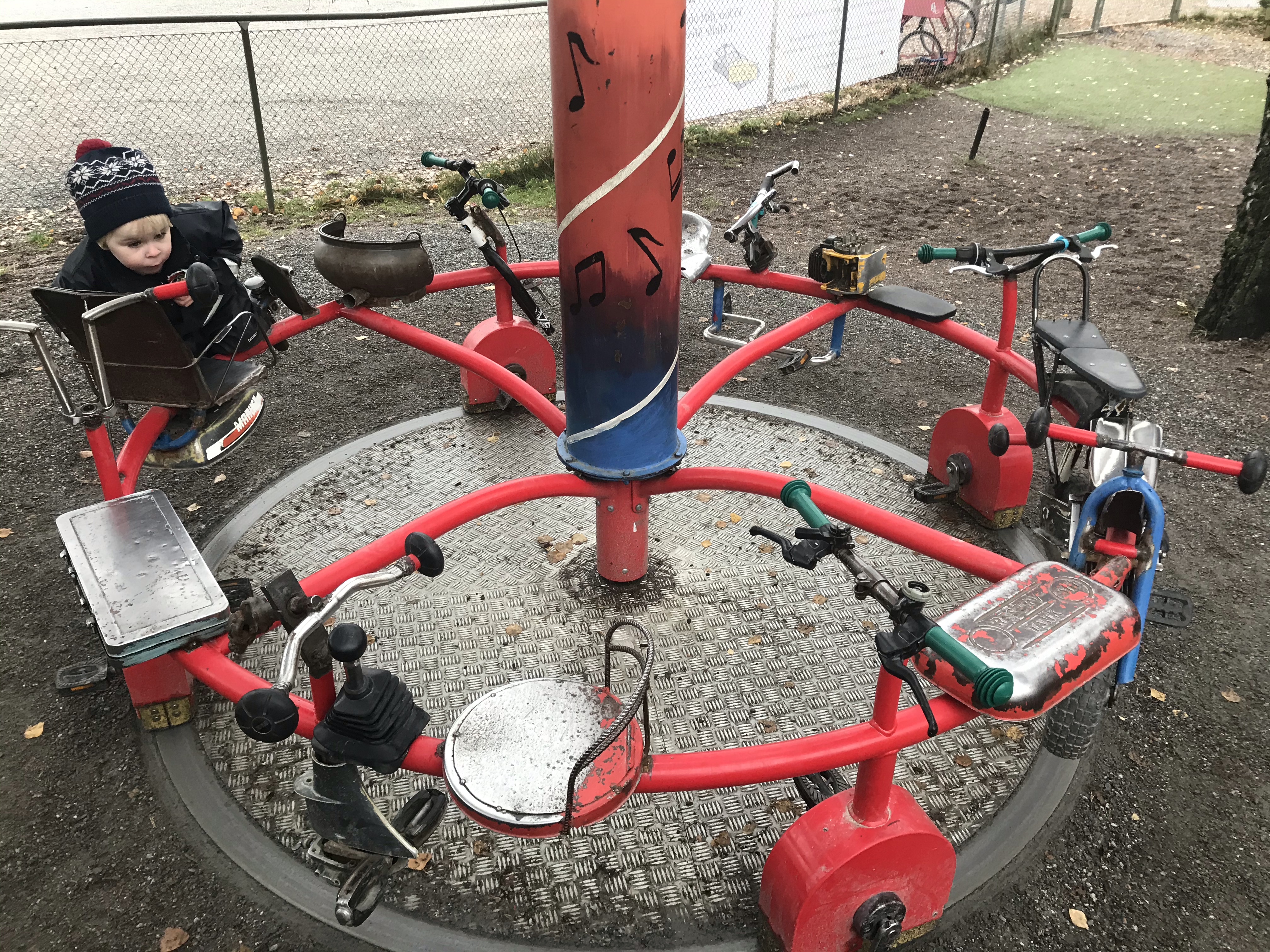 Idag har vi varit i Råcksta parklek i 3 timmar. Först badade Erik lite. Sedan tog vi en fika på kaffebaren i Råcksta och sedan blev det full fart när Erik kom över sorgen över att inte få åka tunnelbana.