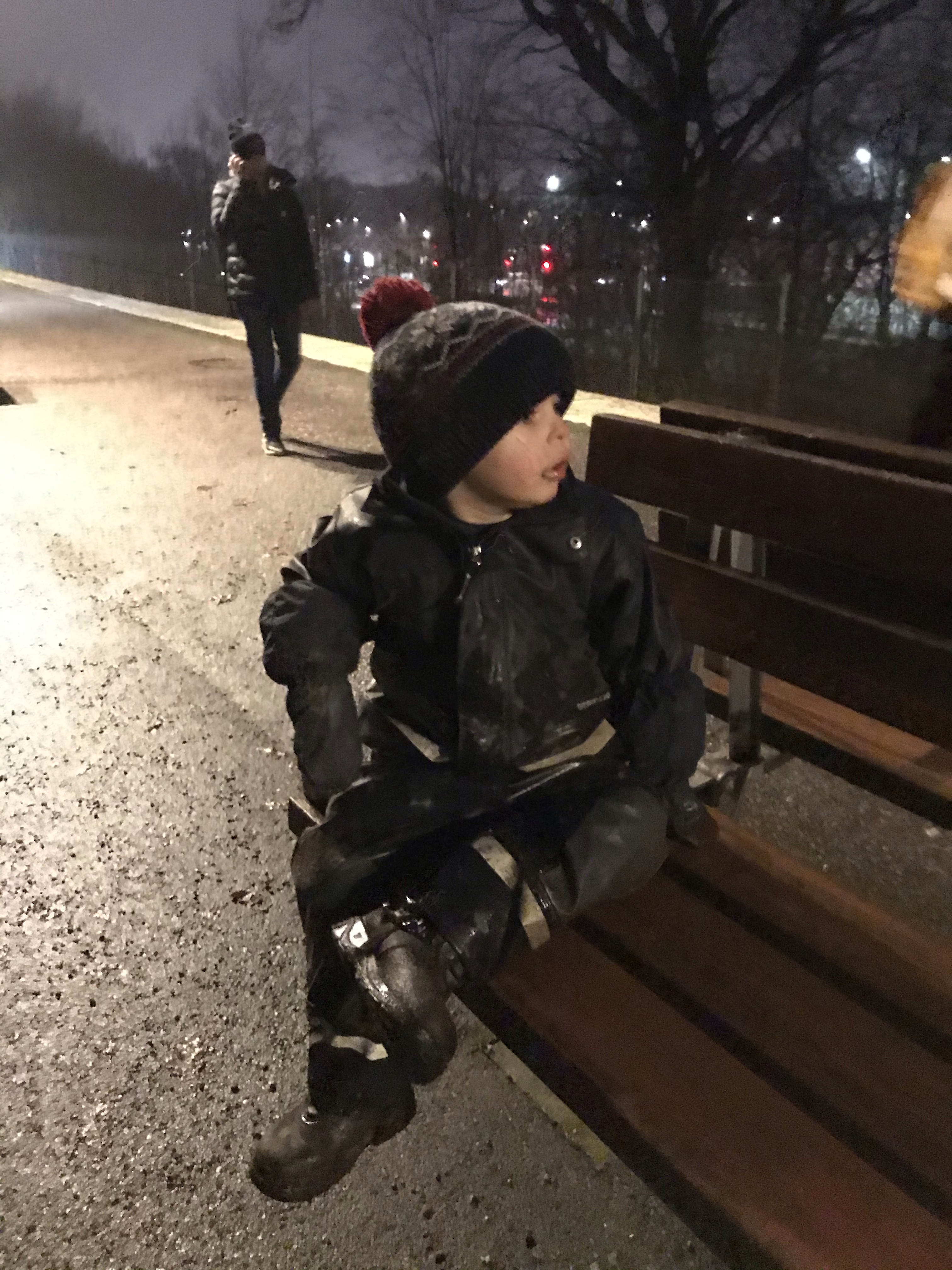 På vägen hem hämtade vi en mycket trött storebror efter en lång dag på förskolan.