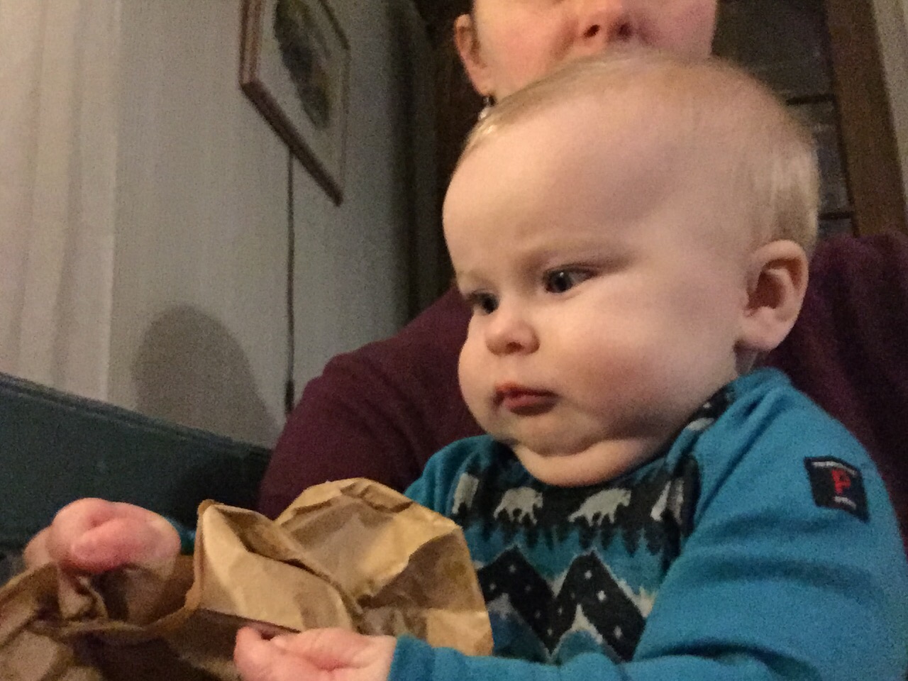 Tomten gjorde en dramatisk entré genom den nedsläckta hallen och vår tappra lilla hjälte höll ställningarna i mammas famn.