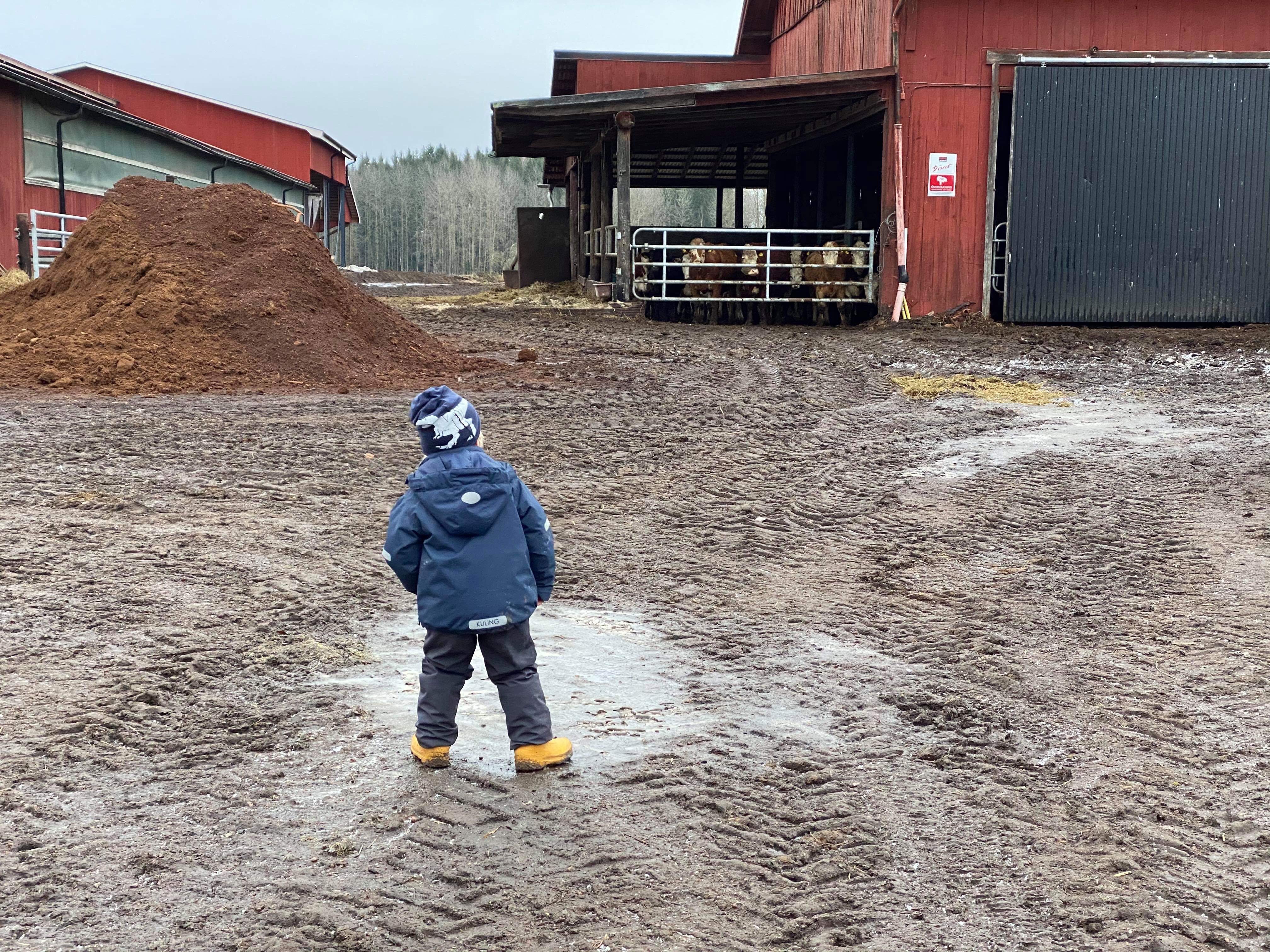 Idag har familjen varit på ko-spaning. Vi fick en guidad tur av Dag, koägarinnans pappa. Vi har sett kvigor redo för konfirmation, kossorna som lägger sig i skitrännan och därmed får gå ute, tjurkalvarna samt ladugården där de skötsamma kossorna går.