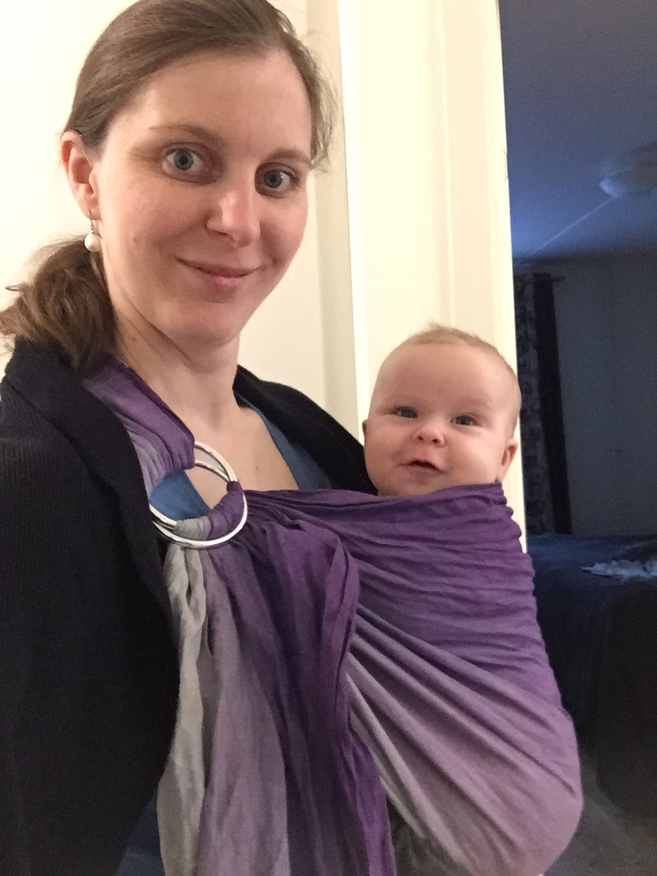Nu har vi en ringsjal för att kunna bära Erik hemma kortare stunder. Erik invigde sjalen med att somna direkt.