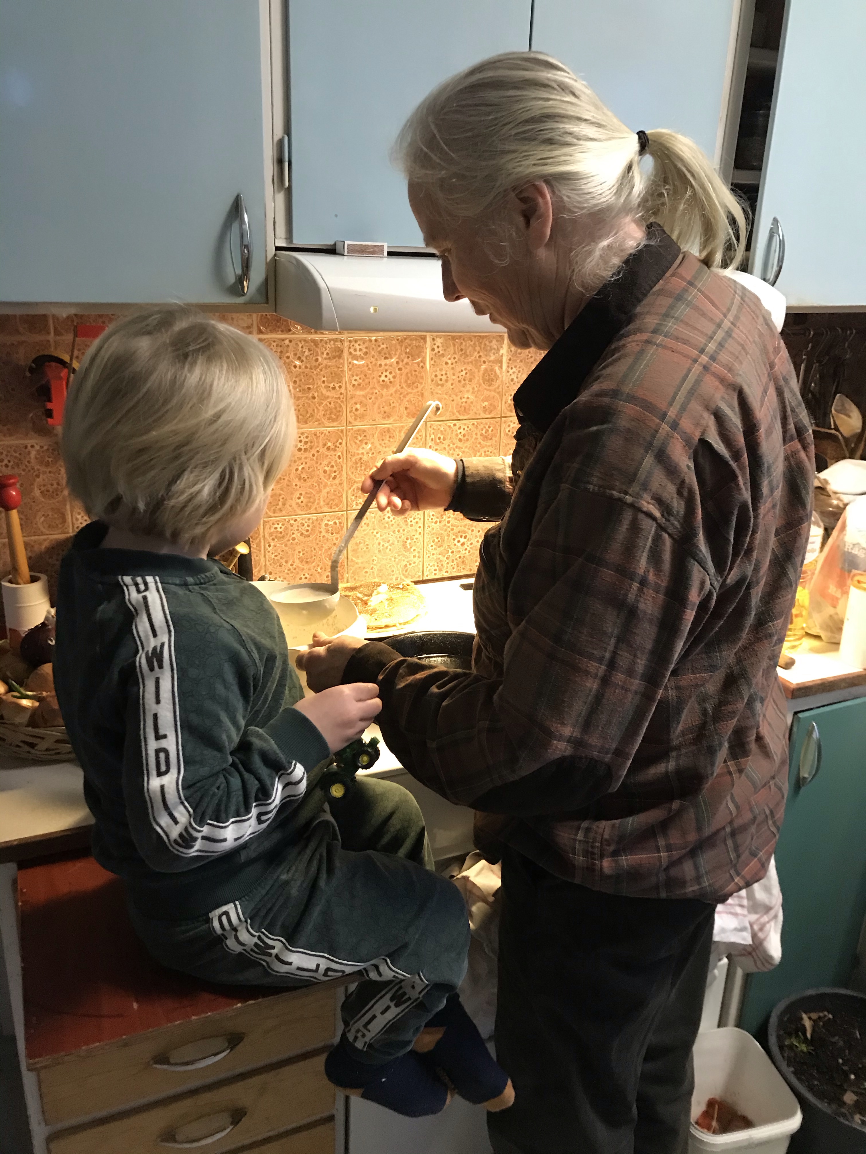 Erik har hjälpt mamma köra ved, ta emot mormors gäster och kört Astrid i skrindan.