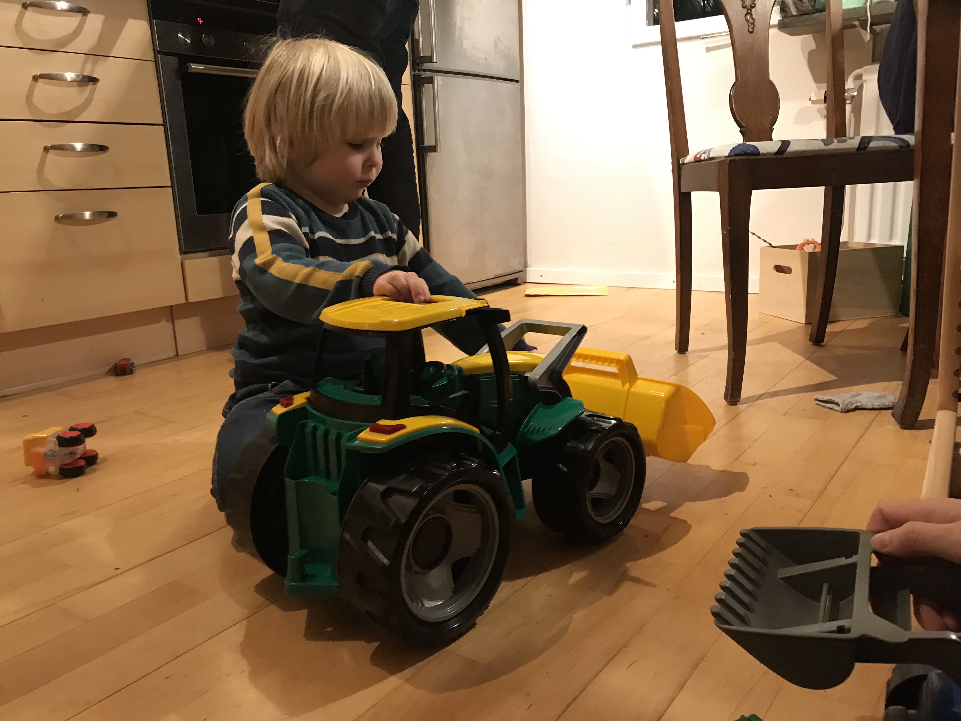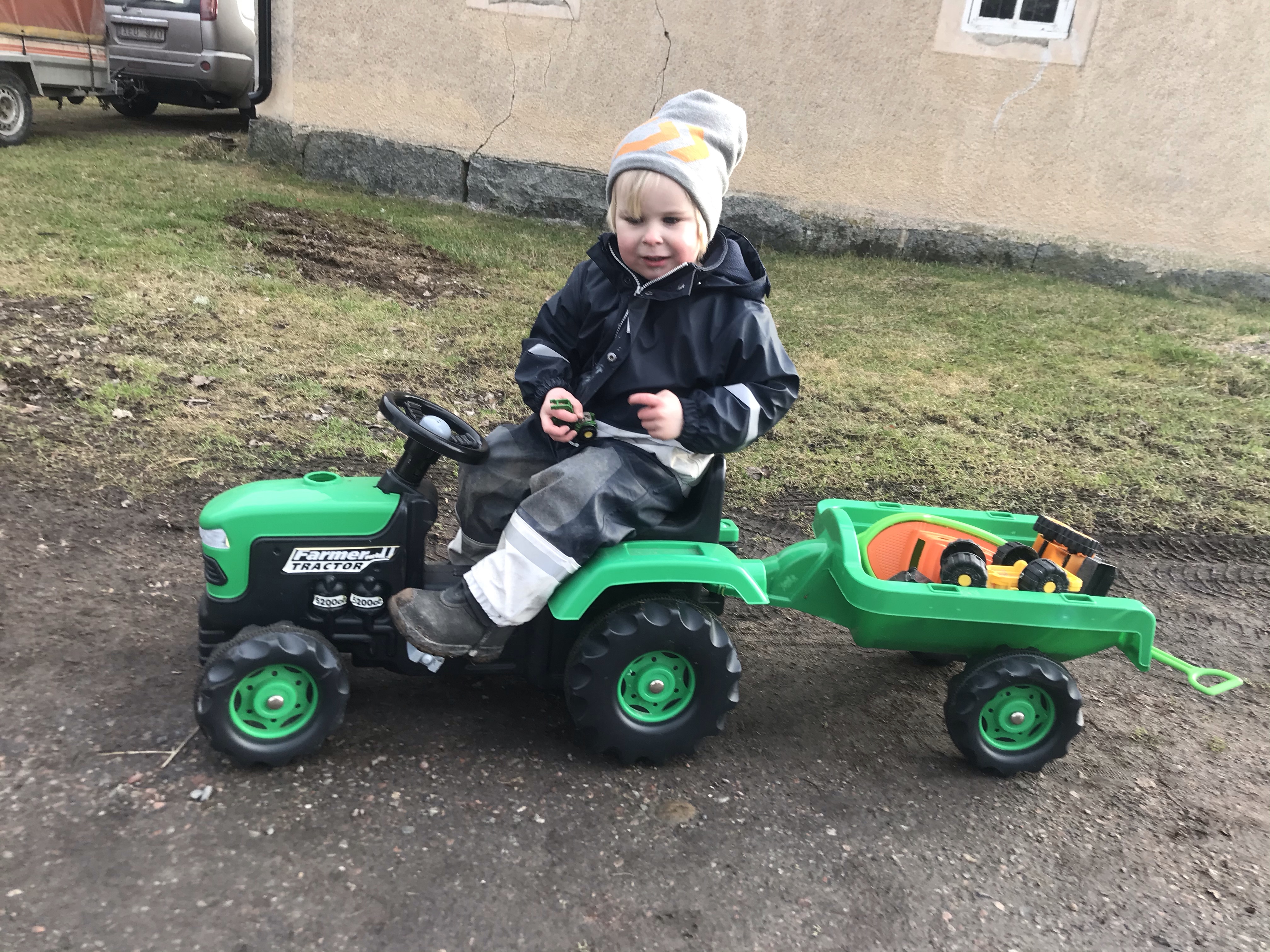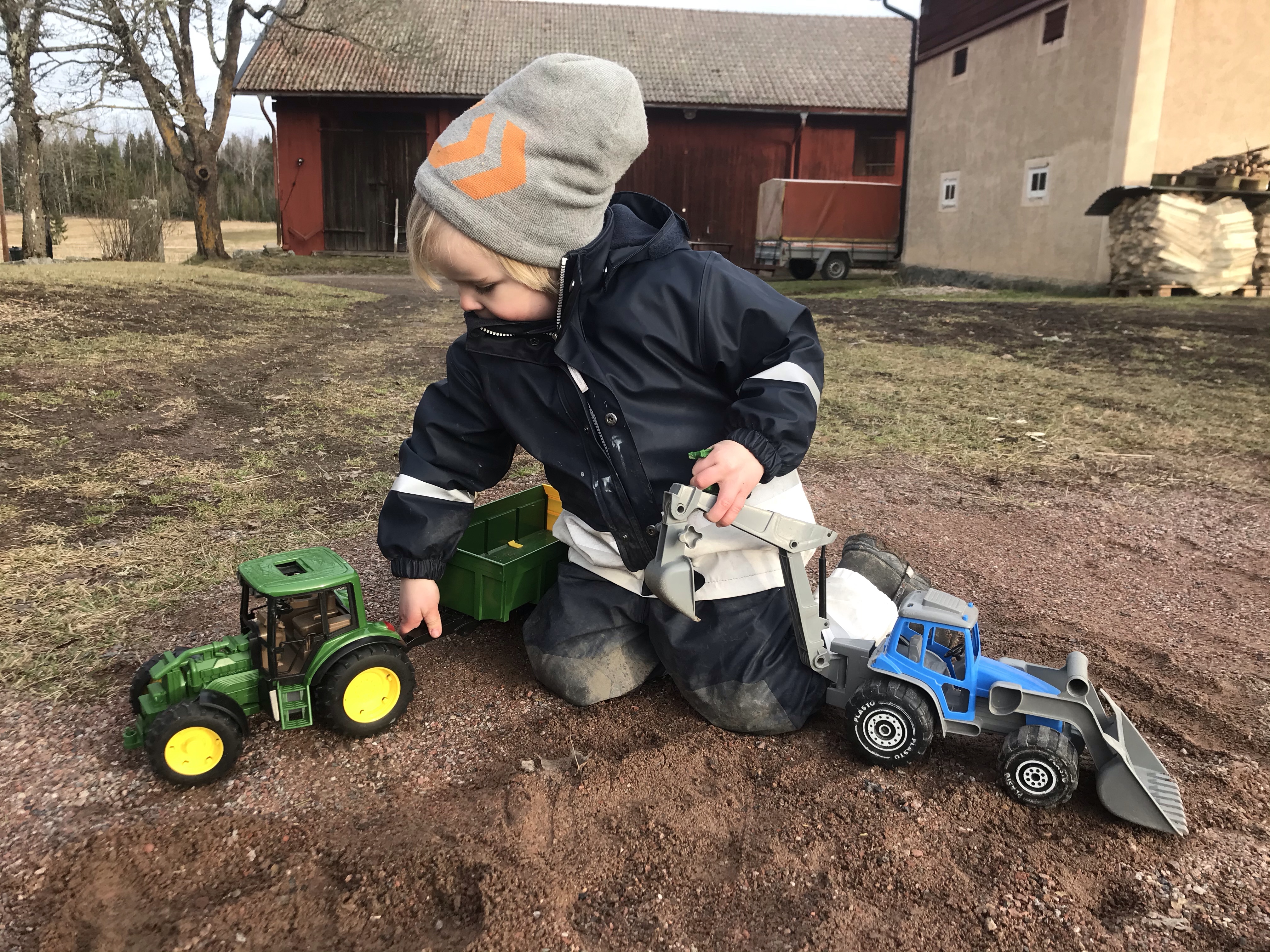 Idag fick Erik äntligen följa med pappa till leksaksaffären och köpa en traktor för egna pengar.