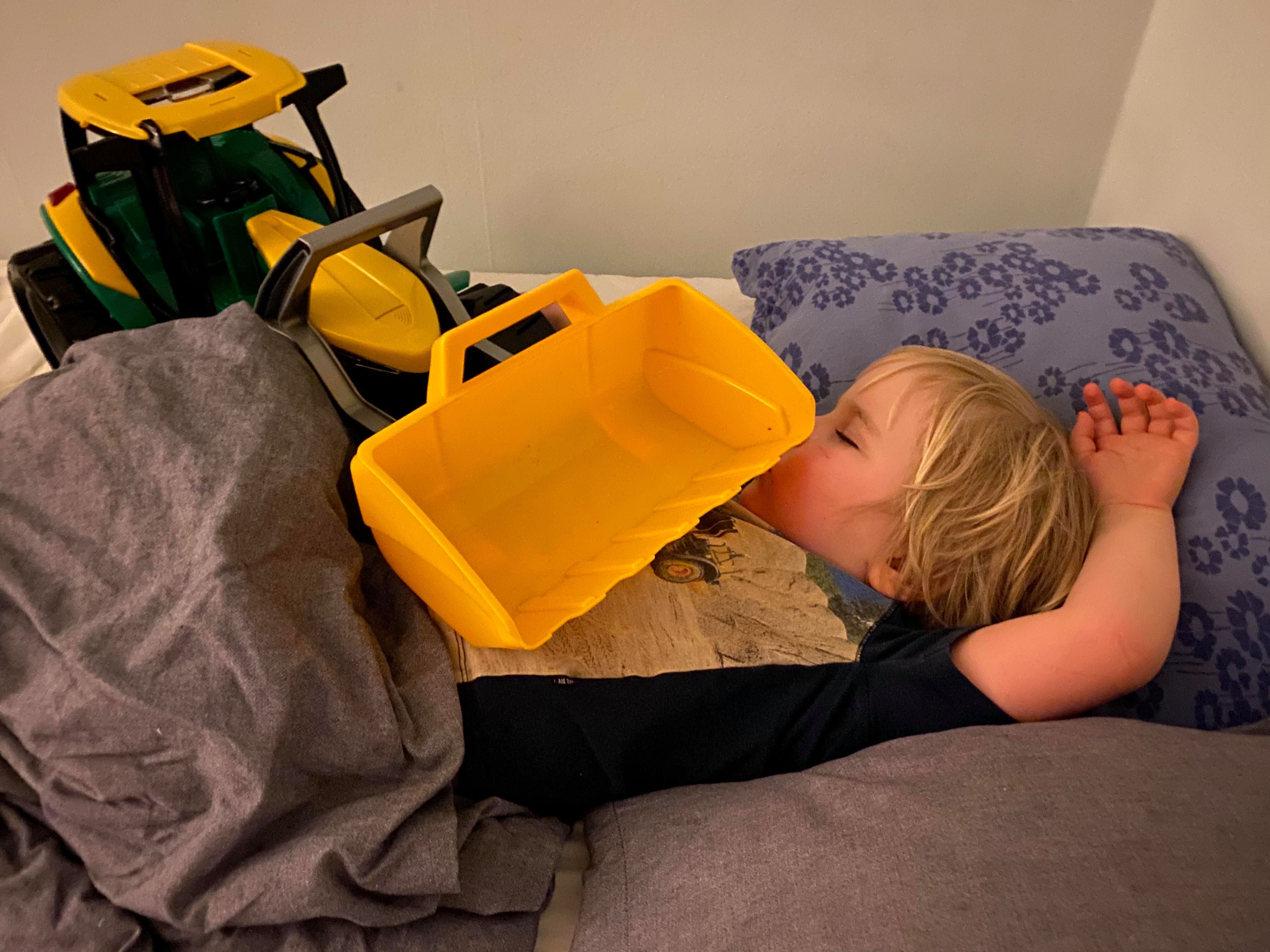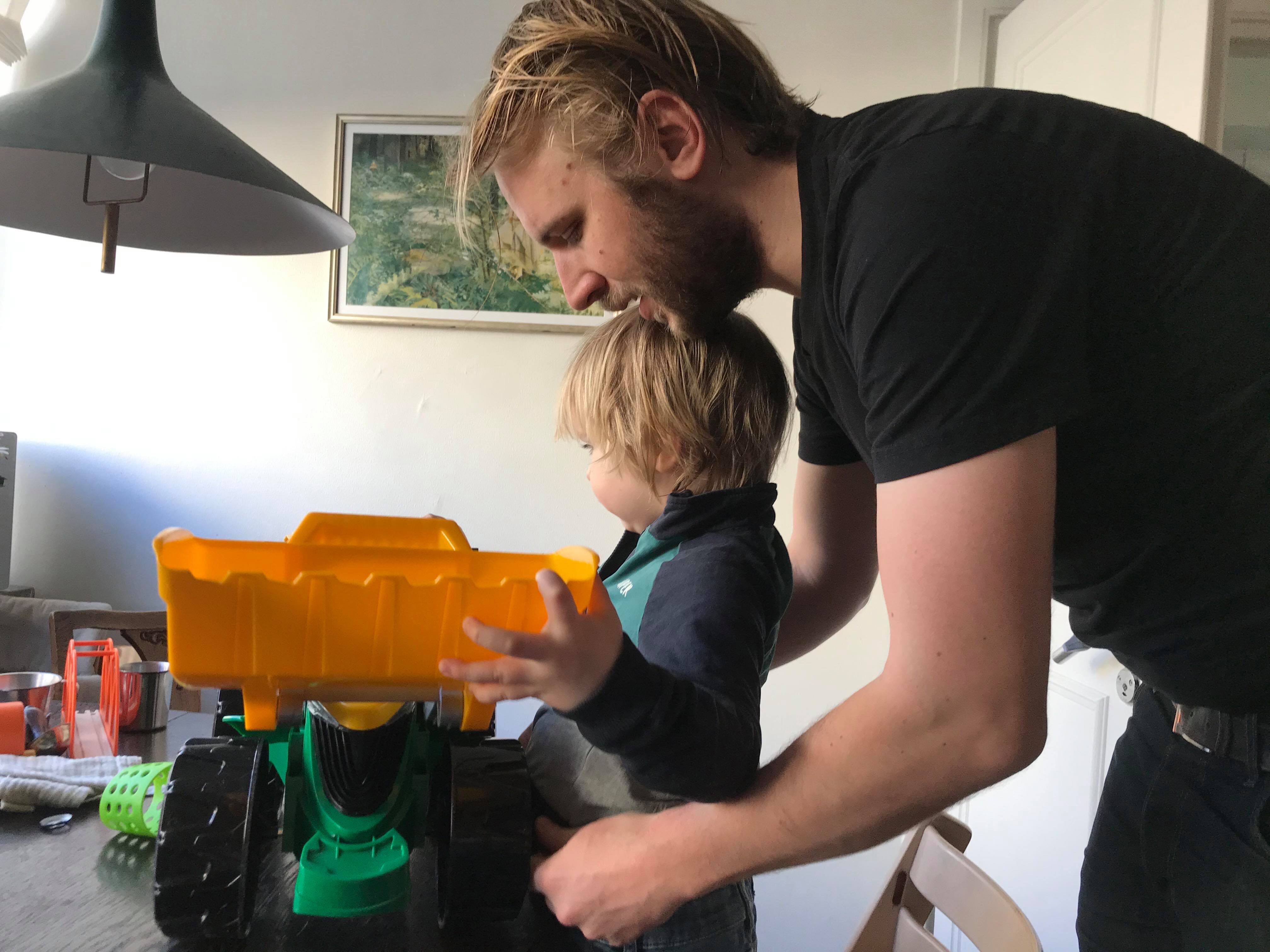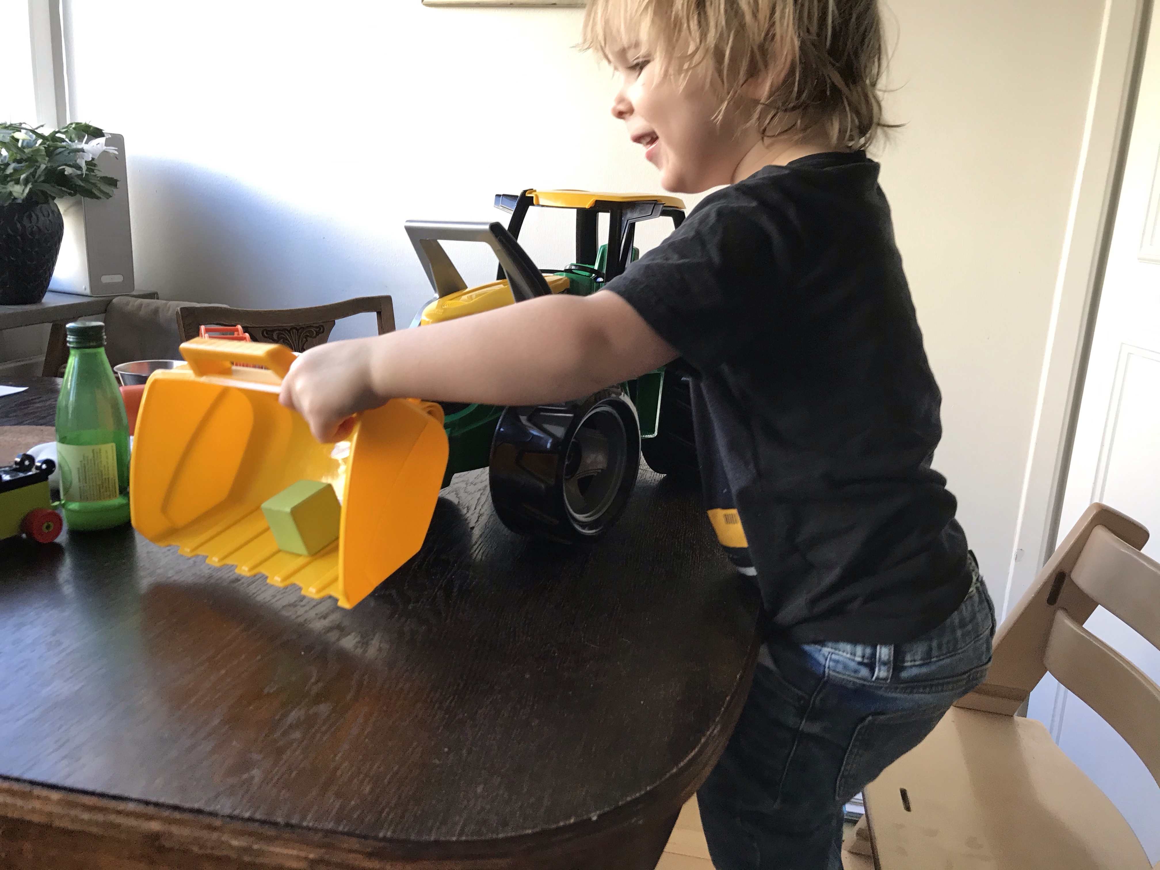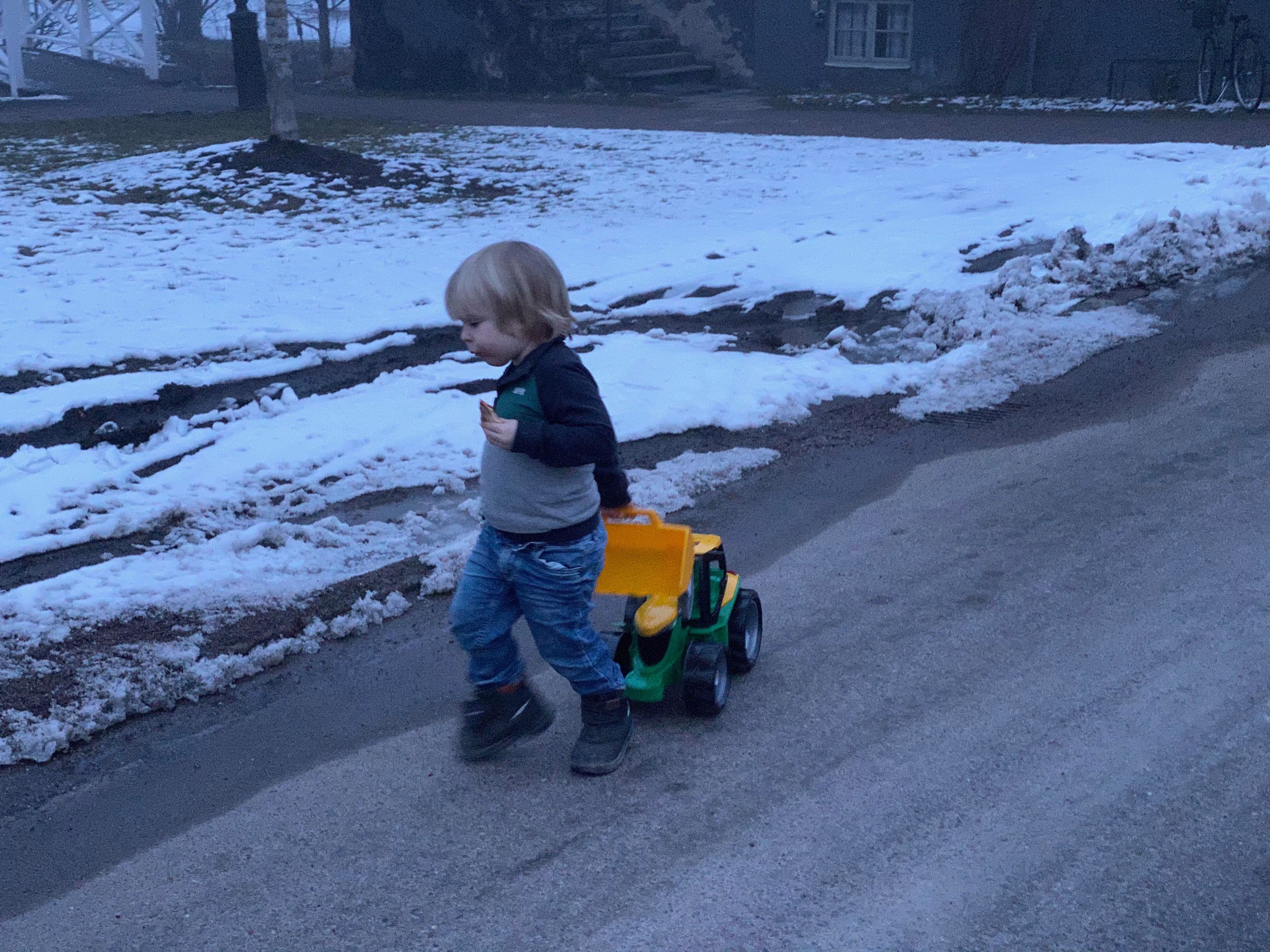 Idag fick Erik äntligen följa med pappa till leksaksaffären och köpa en traktor för egna pengar.
